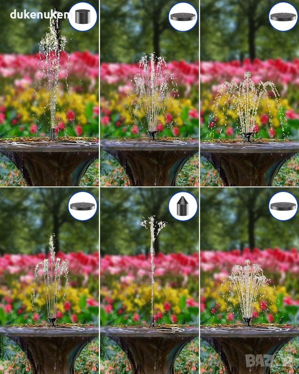 6 различни дюзи и тръбички – създават красиви водни ефекти: