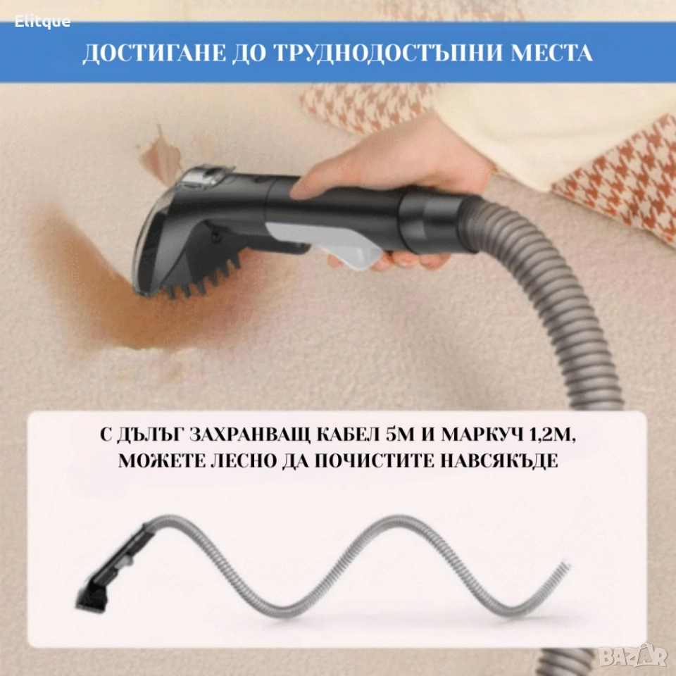 Портативна прахосмукачка с пара – 2 в 1 мокро и сухо почистване на мебели, дивани и килими, 1700W