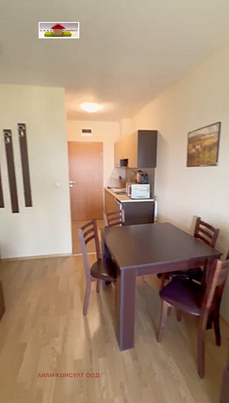 Лиан Консулт ви предлага апартамент /студио/ в близост до Кънтри Клуб и Пирин Голф , разположен в затворен комплекс Аспен Сюитс - град Разлог. Апартаментът е оборудван изцяло и е напълно готов за постоянно живеене в него или с цел инвестиция. Намира се на трети етаж в комплекса с площ от 45.26 квадратни метра като апартамента се състои от: предверие, напълно оборудван кухненски, стая с двойно легло и тераса /покрита/ с хубав изглед към Рила планина.