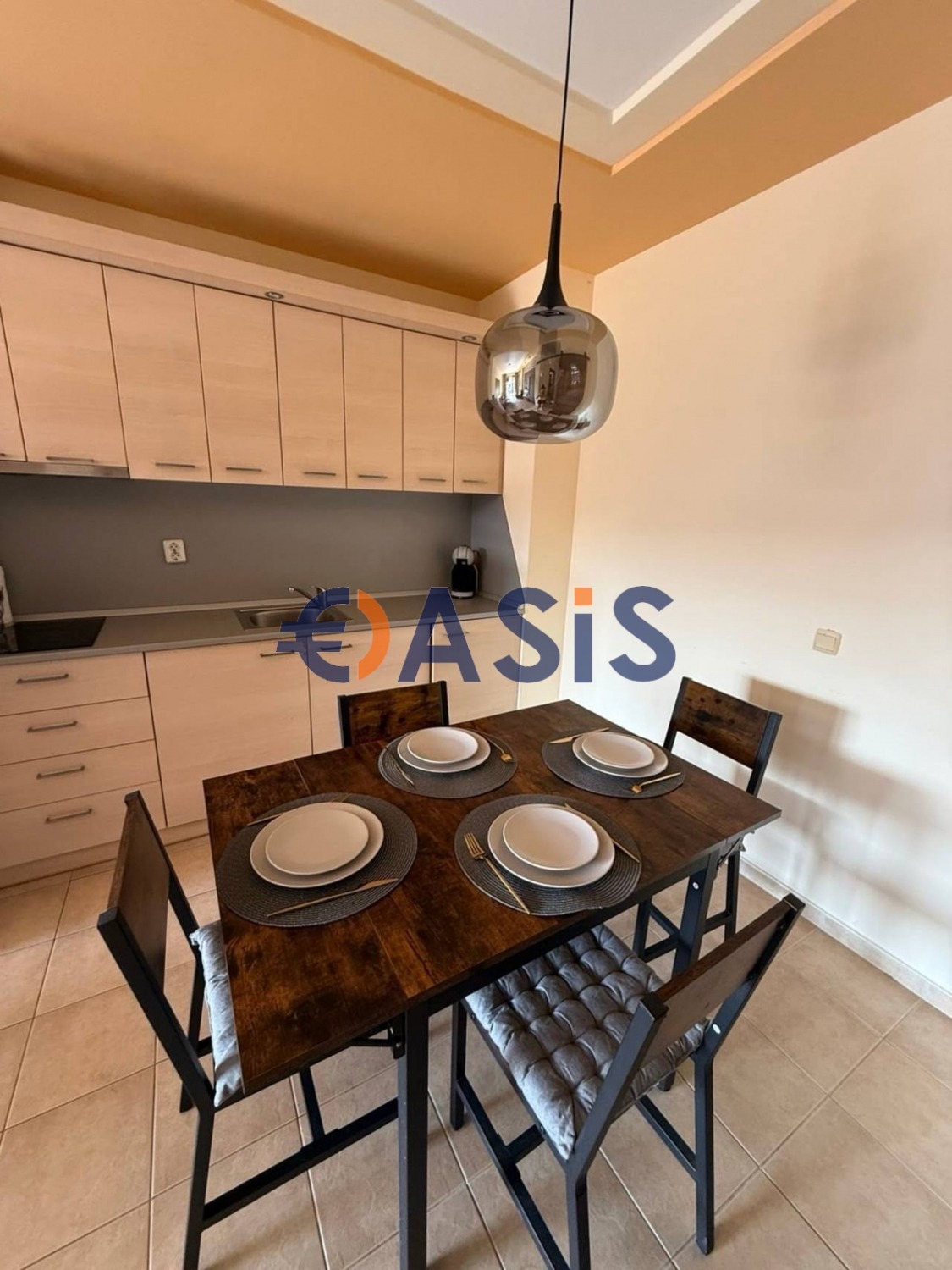 Апартамента е обзаведен дизайнерски,състои се от кухня с трапезна маса,кът за сядане,една спалня,тераса с изглед към басейна и модерно оборудвана баня с тоалетна.Чудесен както за почивка,така и за целогодишно живеене,отдаване под наем,а също и инвестиция.