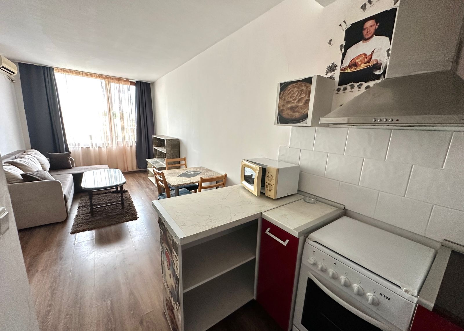 Продава се просторен двустаен апартамент в Слънчев бряг, срещу магазин Младост, разположен на 3 етаж в затворен, благоустроен, охраняем и целогодишно функциониращ комплекс с ниска такса поддръжка, собствен паркинг и басейн; комплексът се намира в непосредствена близост до цялата необходима инфраструктура, включително магазини, аптеки, ресторанти, спирки на транспорт и зони за отдих, а плажът е разположен на около 500 метра, което прави имота отличен избор както за постоянно живеене, така и за летен отдих или отдаване под наем; апартаментът е напълно обзаведен с мебели и техника и е напълно готов за нанасяне без допълнителни разходи; на купувача се предоставя изгоден бонус - една година без заплащане на такса поддръжка; сградата е въведена в експлоатация, разполага с Акт 16, както и с битови тарифи за вода и електричество, осигуряващи комфортно и икономично поддържане на имота.