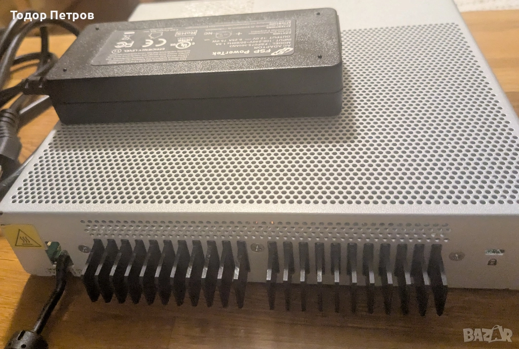 Захранването не е оригиналното му - то се загуби при смяната на офиси и съм сложил друго - много качествено FSC 6A, но не поддържа 48V и респективно контролерът няма POE. Запоен е здраво и работи чудесно. Може да бъде разпоен и да се сложи оригинално - крачетата си стоят.