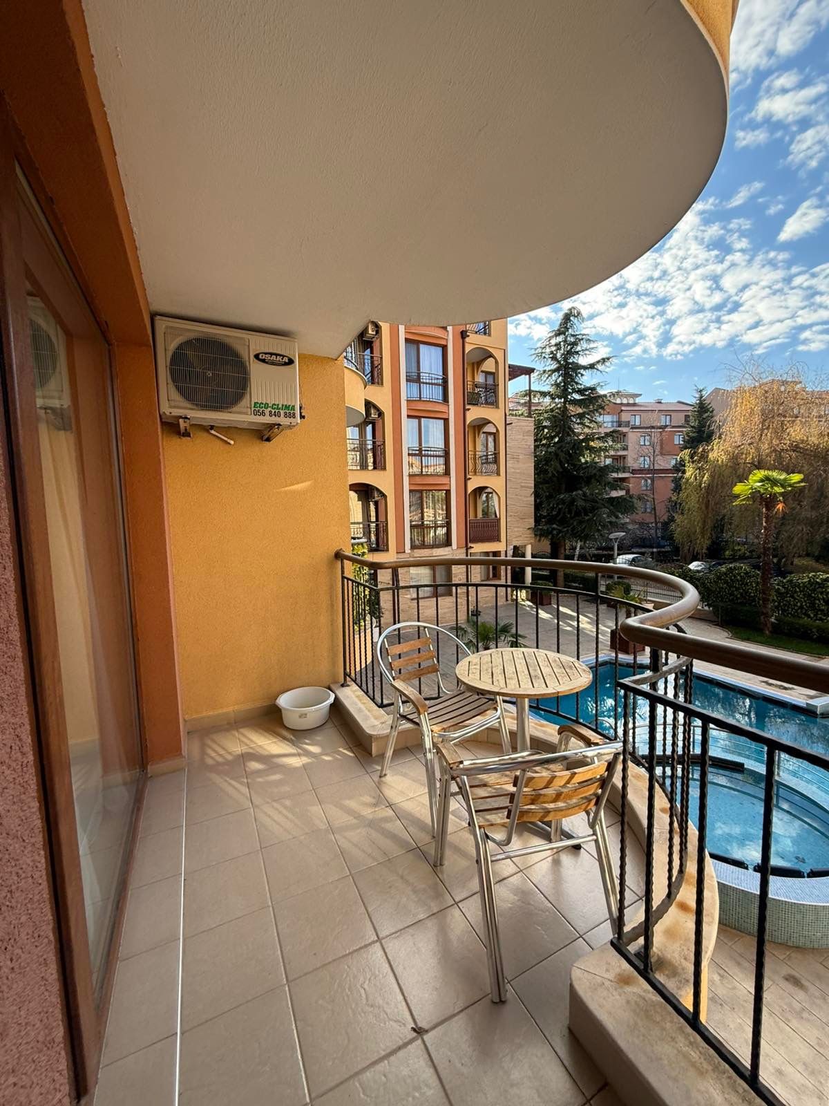 Продава се просторен двустаен апартамент на Слънчев бряг в кв. Чайка, разположен на втория етаж в луксозен, целогодишен, охраняем и добре поддържан комплекс, предлагащ на своите жители висок стандарт на комфорт с наличието на няколко басейна, фитнес, SPA зона, ресторанти и разнообразни удобства. Комплексът се намира в непосредствена близост до цялата необходима инфраструктура и само на 450 метра от плажа, което прави локацията изключително подходяща както за постоянно живеене, така и за почивка. Апартаментът е напълно обзаведен с нови мебели и съвременна техника и е готов за незабавно нанасяне без допълнителни разходи. Налични са Акт 16 и битови партиди за вода и електричество, което гарантира юридическа яснота и удобство при експлоатация на имота.