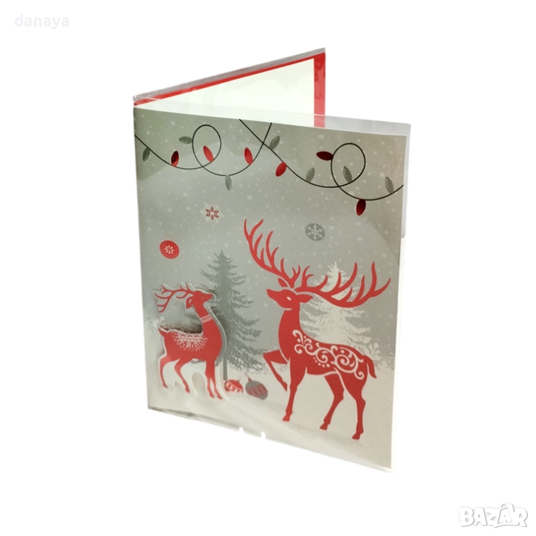 Благодарение на елегантния червен плик, картичката стои прекрасно под елхата или прикрепена към подаръчна кутия. Подходяща е и за коледни кошници и корпоративни подаръчни комплекти, където добавя завършен и професионален вид.