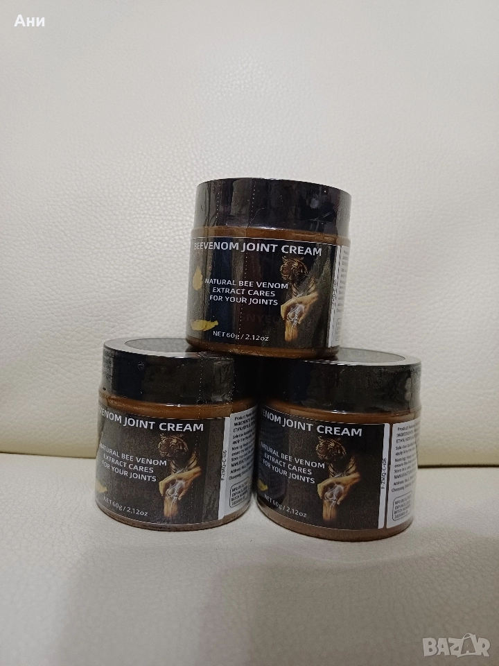 Крем за стави с пчелна отрова, снимка 1 - За пчели - 52712259 Крем за стави с пчелна отрова, снимка 2 - За пчели - 52712259 Крем за стави с пчелна отрова, снимка 3 - За пчели - 52712259 Крем за стави с пчелна отрова, снимка 4 - За пчели - 52712259 1/4