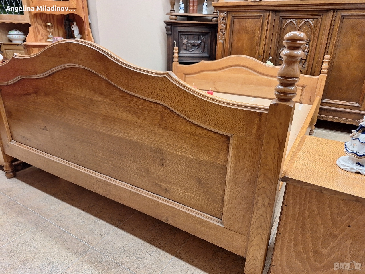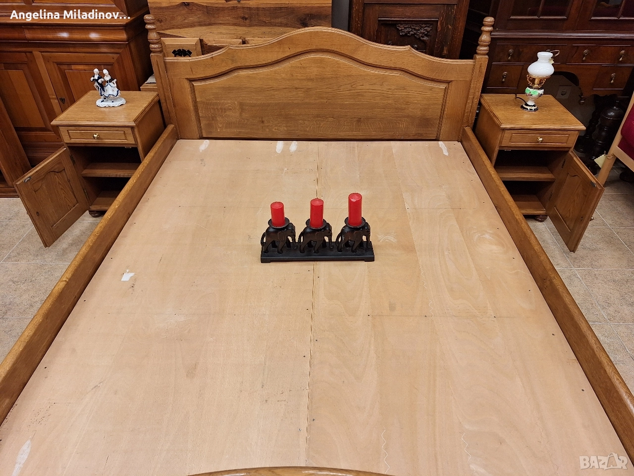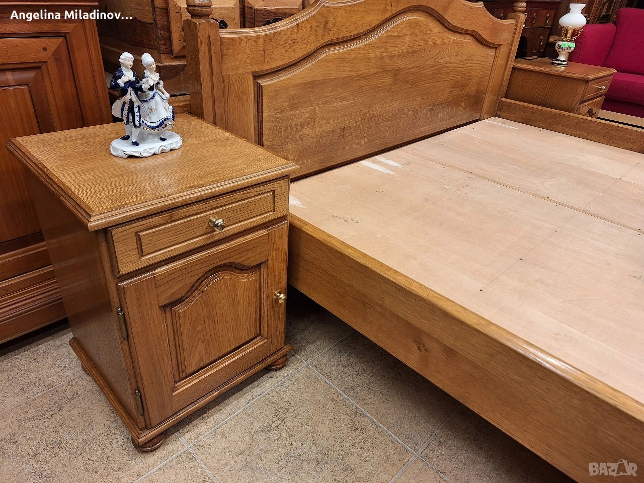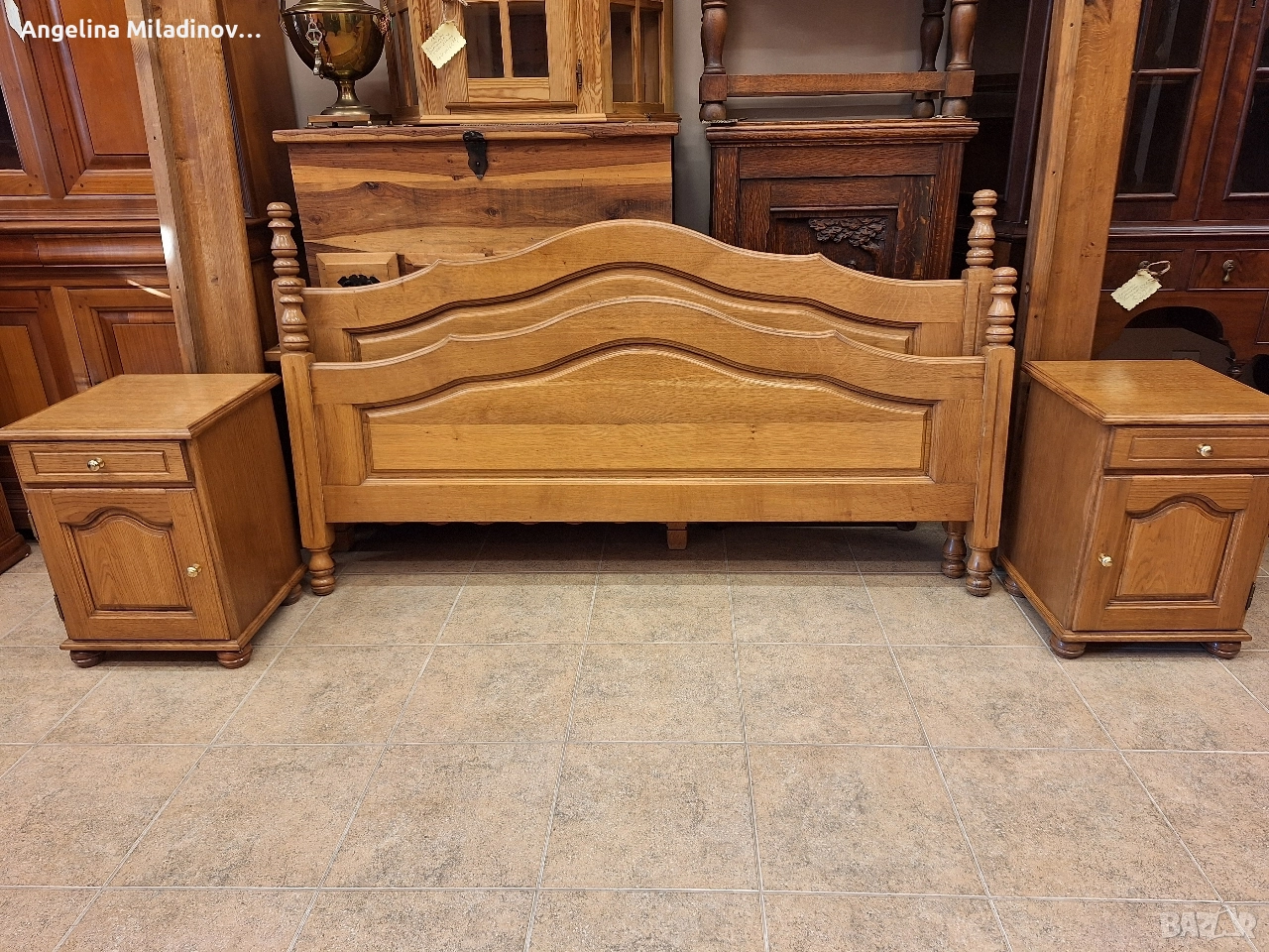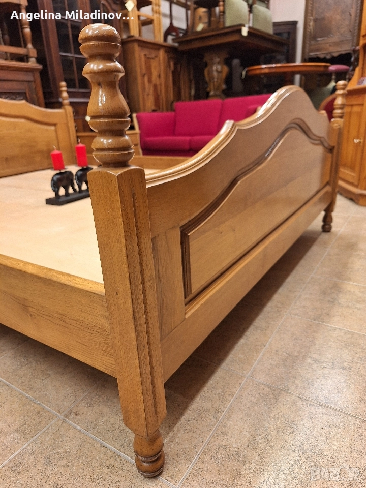 подматрачна рамка изработена от естествена дървесина и две нощни шкафчета. Подходяща за спалня с традиционен дизайн. Изработена от качествен дъб, което гарантира здравина и дълготрайност. Комплектът включва леглото и нощните шкафчета, като всички елементи са в еднакъв стил. Размери на спалнята: За матрак 160/200 см. Височина на предна табла - 80 см Височина на задна табла - 93 см. Нощни шкафчета - 40/40/56 см. Цена - 600 € за комплекта 1173,50 лв.