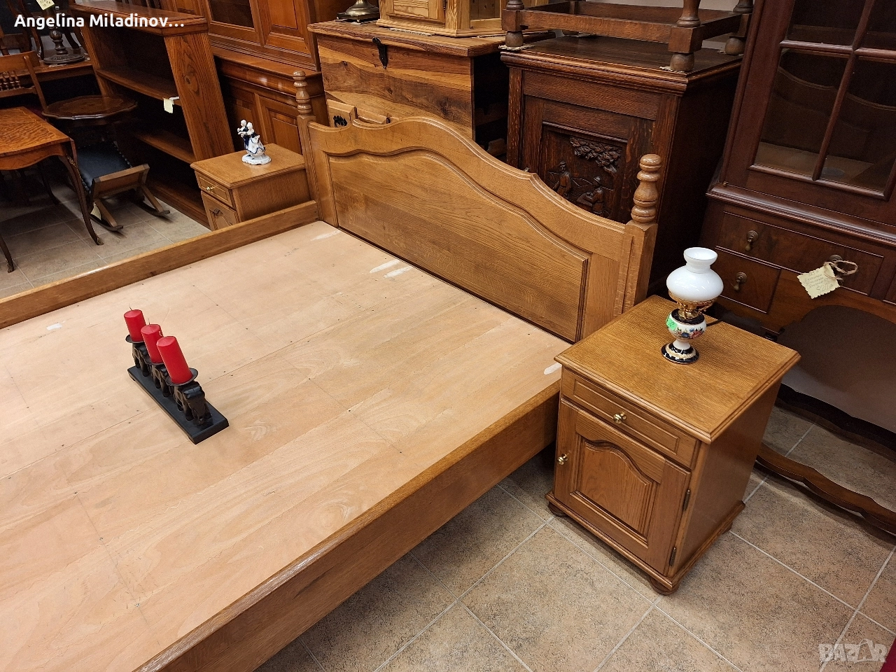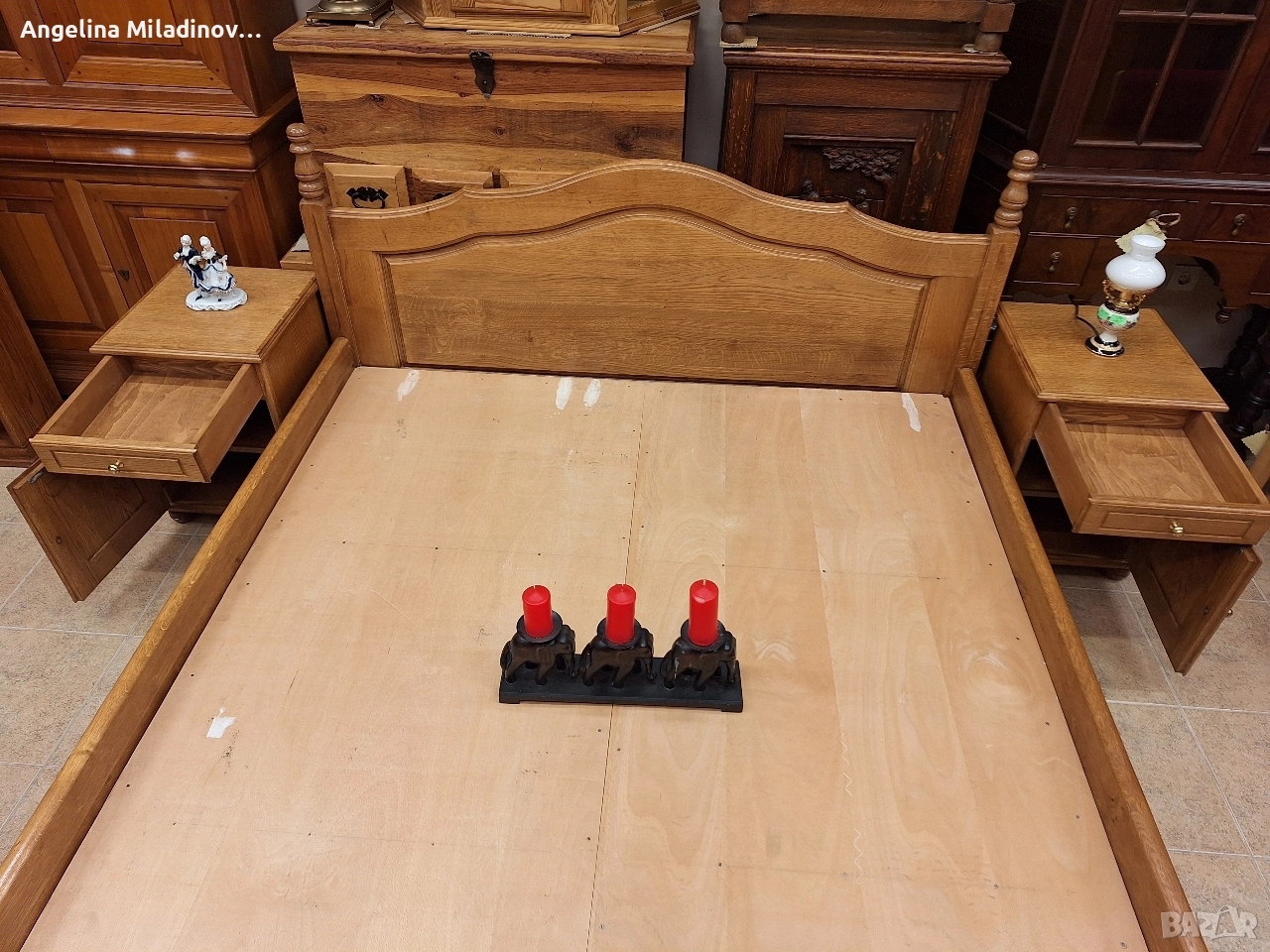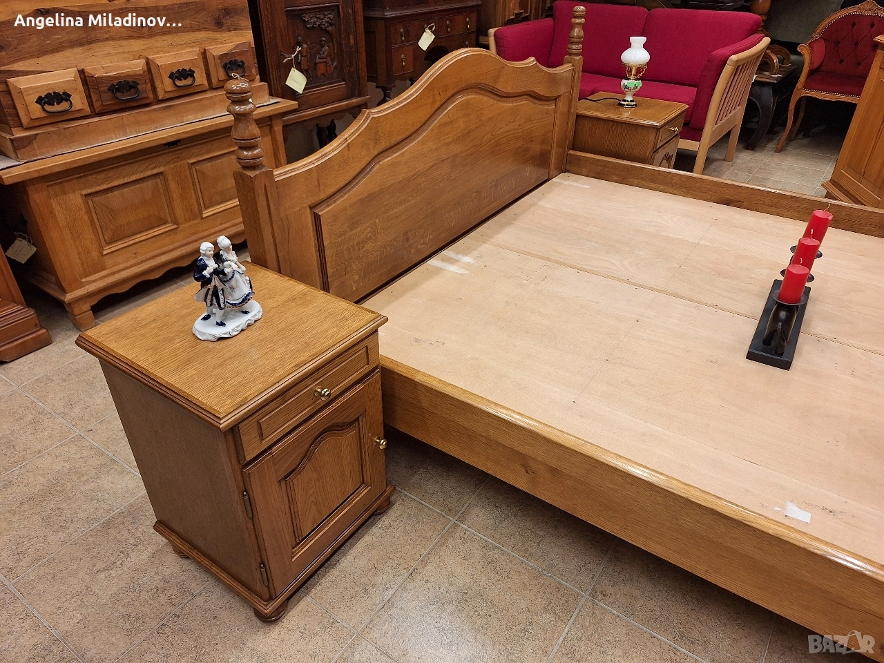 К - т спалня и две нощни шкафчета. Масивна дъбова спалня за матрак 160/200 см с