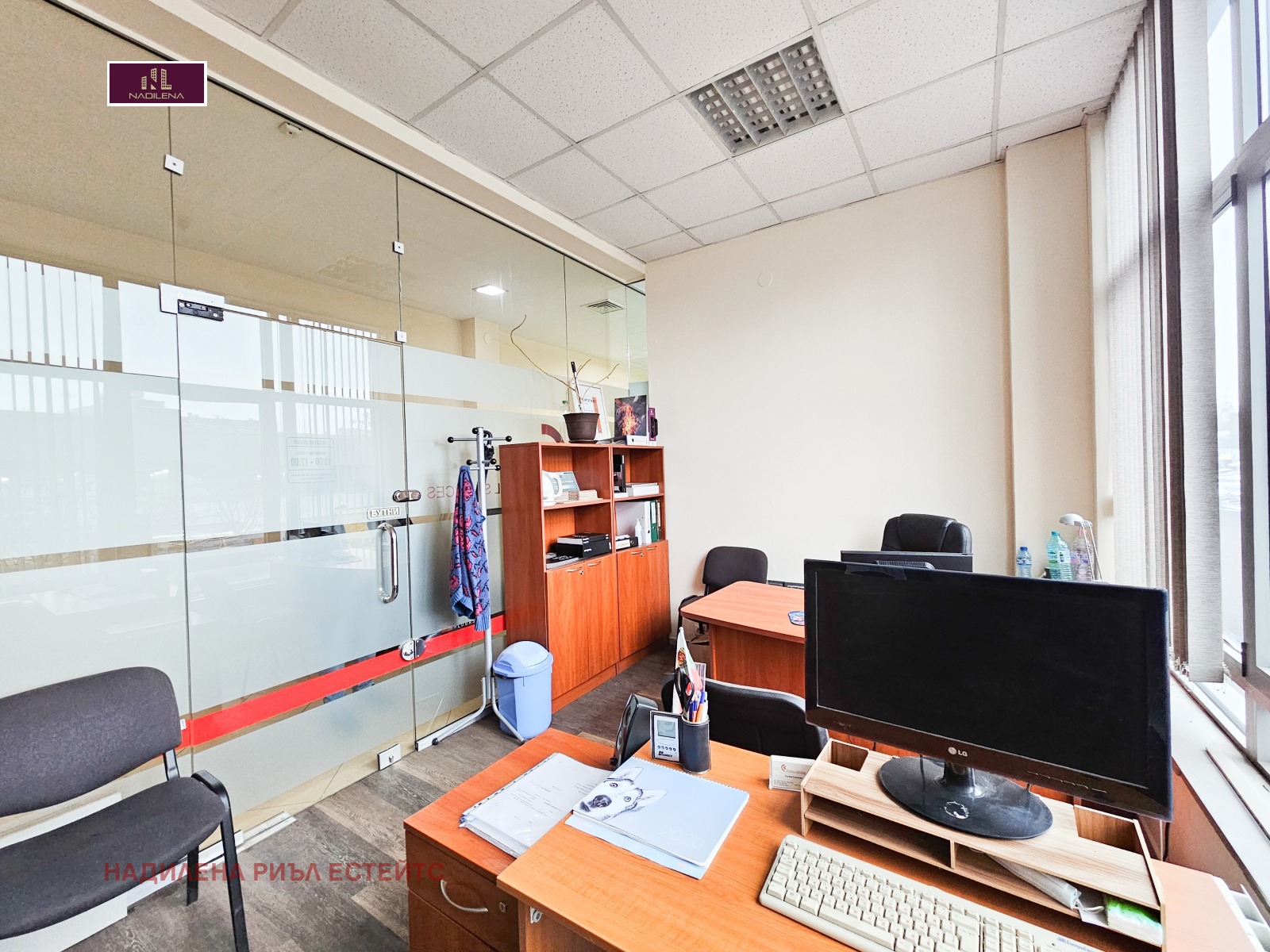 Офисът е напълно обзаведен с мебели, бюра, столове, шкафове, компютри и е готов за нанасяне.