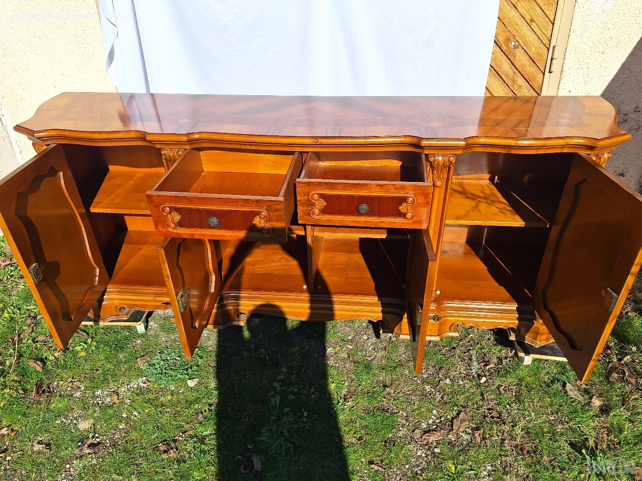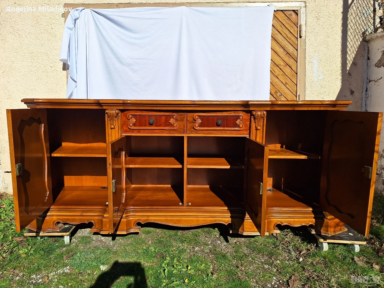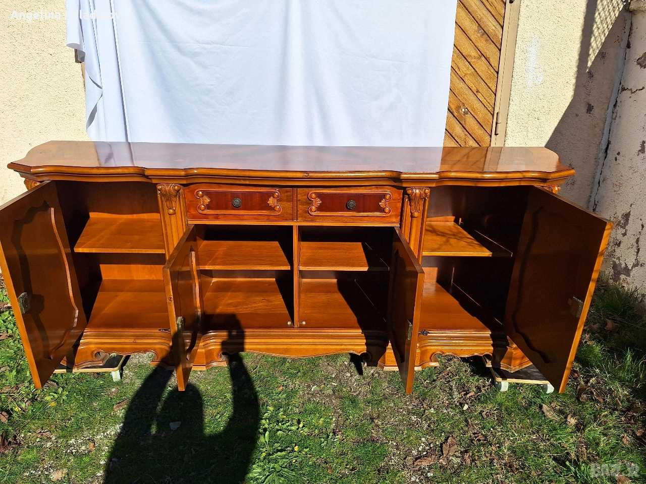 Италиански уникален комод с богата Интарзия. Италиански ръчно изработен комод от масивна черешова дървесина с богата Интарзия ( технология от миналото, картини от различни видове дърво) и нежна дърворезба. Внушителен шкаф излязал сякаш от италиански дворец. На живо е още по - впечатляващ. Разгледайте и другите ми обяви. Последвайте ни и във фейсбук Мебели шик. Предлагаме и изгоден транспорт за цялата страна. Размери: Дължина - 225 см. Ширина - 50 см. Височина - 86 см. Цена - 1,150 €. 2249,20 лв.