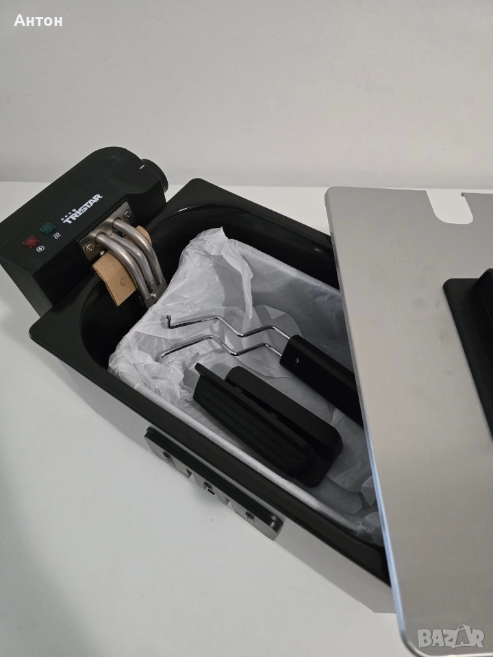 Продавам висококачествен фритюрник Tristar FR-9326, изработен от неръждаема стомана – идеален за приготвяне на хрупкави пържени картофи, месо, риба, зеленчуци и много други. С вместимост 3 литра и мощност 2000 W, уредът загрява бързо и осигурява равномерно пържене всеки път.