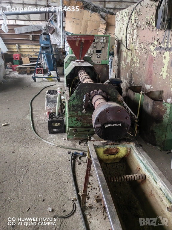 Машините са почти нови, малко употребявани в добро техническо състояние. Това е комплектна цена, като може и по-отделно цени по договаряне! Линията се състои от мелница, шнек подаващ към ваната, флотационна вана, шнек към центрофуга, сушилня, шнек подаващ към агломератор и шнек вадещ агломерираният материал, екструдер Ф90, с патронен филтър, охладителна вана и режещо устройство.