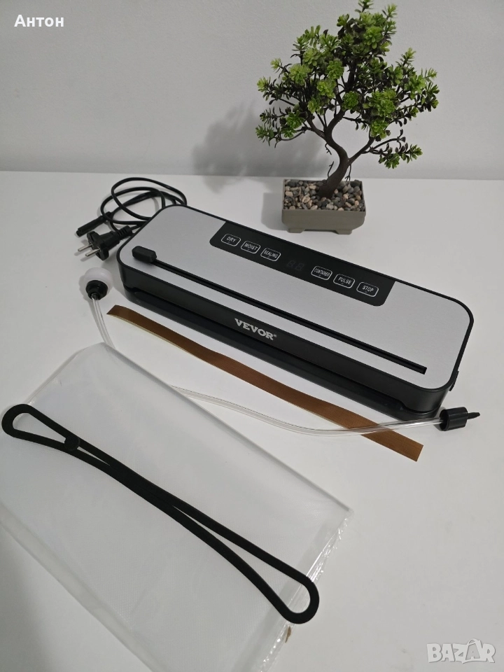 Продавам висококачествено VEVOR Vakuumiergerät – мощна и надеждна вакуум машина, идеална за съхранение на храни, подготовка за су вид (sous-vide), предпазване от влага, миризми и разваляне. Подходяща е както за домашна употреба, така и за малък бизнес, заведения и кухни. Основни характеристики: Мощна вакуумна помпа – осигурява бързо и плътно вакуумиране. 2 режима на работа – сух и влажен режим, подходящи за различни видове храни. Автоматично запечатване – с едно натискане на бутон получавате идеално запечатан плик. Висококачествена запечатваща лента – стабилно и херметично затваряне всеки път. Компактен дизайн – лесна за съхранение и работа в домашната кухня. Икономия и безопасност – удължава срока на годност на храната до 5 пъти.