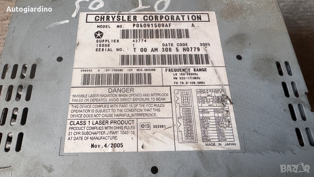 Оригинална Аудио / GPS и видео система за Chrysler PT Cruiser - P05091509AF / T00AM3085H0779