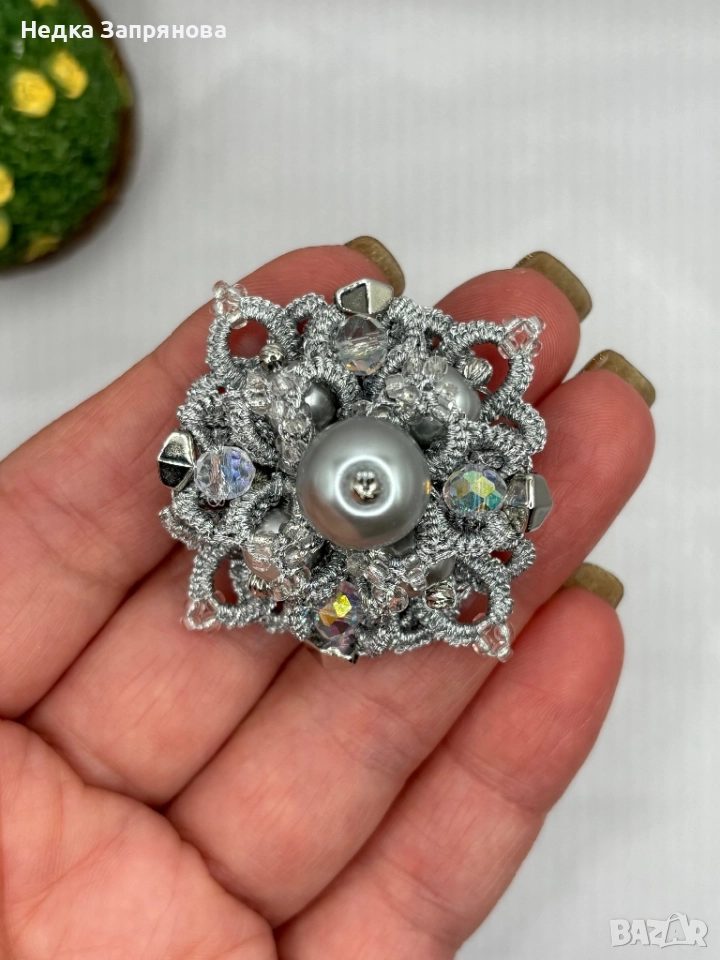 Брошка Ръчно изплетена Уникален акцент за всеки стил Различни цветове по поръчка → Обява 52713472