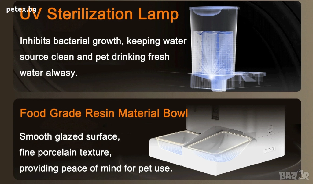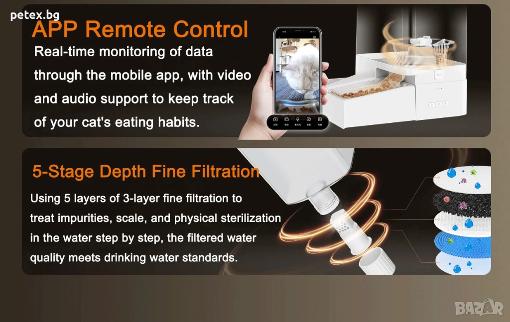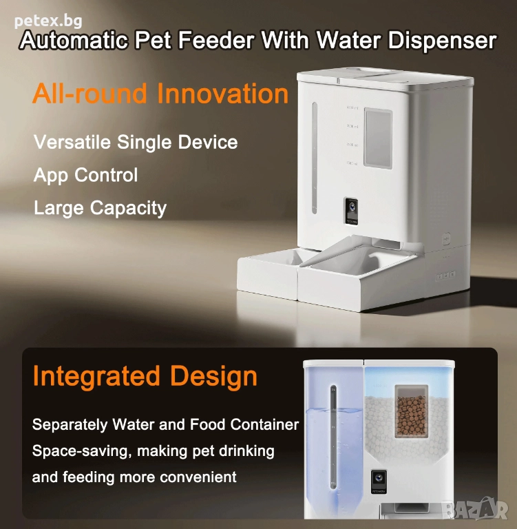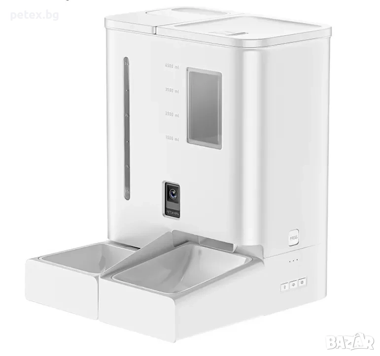 смарт автоматична хранилка за домашни любимци. Устройството работи чрез мобилно