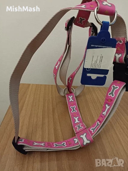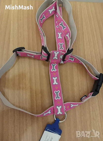 Нов нагръдник за кучета Record OSSICINI, розов с кокалчета. Нагръдникът е сигурен и удобен, без да ограничава движенията на кучето и без да създава дискомфорт. Закупен за 26 лв.
