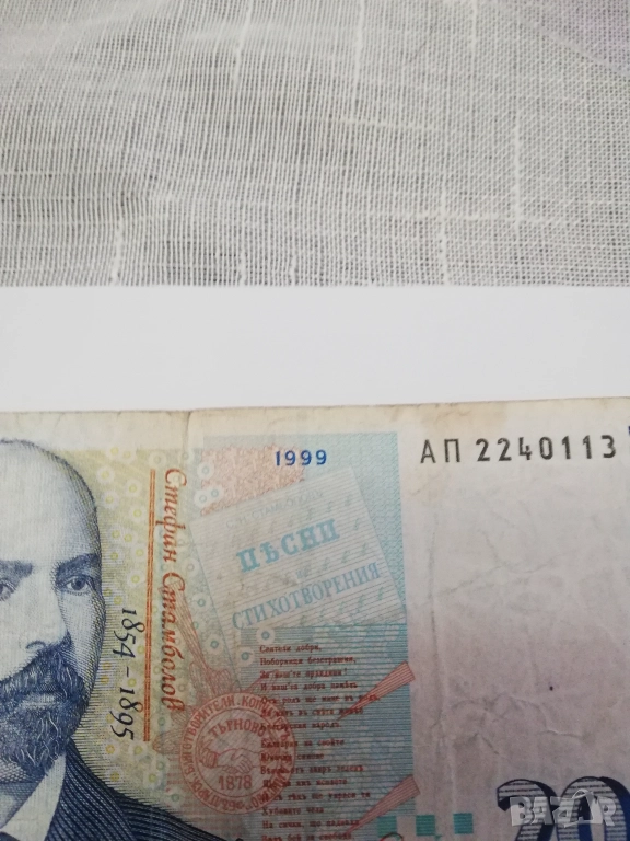 циркулирали три банкноти -10,20 и 50 лв. от 1999 г. в добро състояние.получавате сниманите банкноти.банкнота от 10 лв. цена 10 евро;банкнота от 20 лв. цена 15 евро и банкнота от 50 лв. цена 35 евро.изпращам само с еконт.общо цена за лота 55 евро.