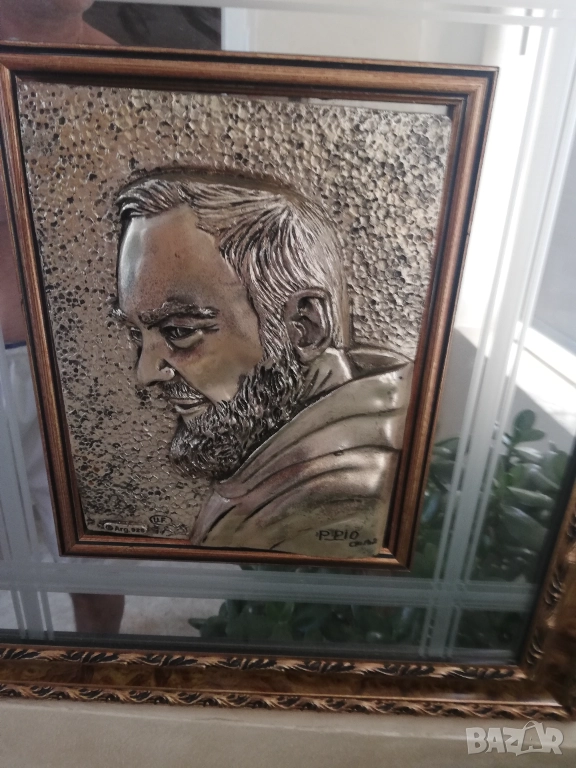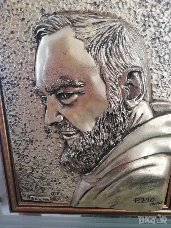 изключителна барокова релефна сребърна /925/ картина от Италия с размери 48,5/55 с ликът на светеца падре Пио. много красива и запазена.картината е от 60/70-те години на миналият век. цена за картината 100 евро.изпраам само по еконт.