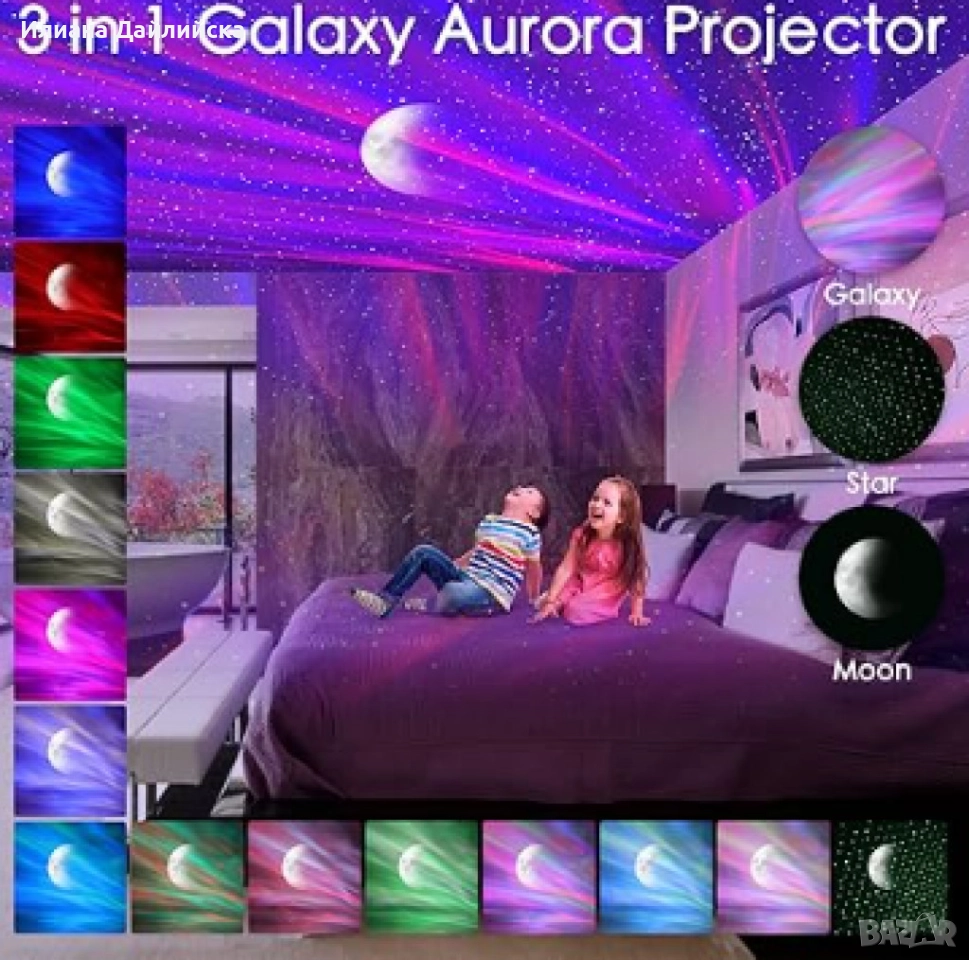 Северно сияние, RGB звездно небе, лазерен проектор, светлина бял шум!