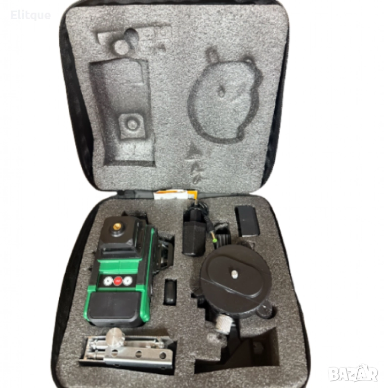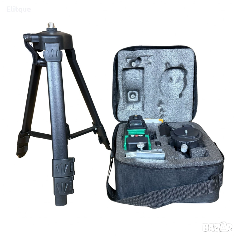 4D Лазерен Нивелир с 16 Линии (Четири Точков), Самонивелиращ се, със Зелен Лазер с тринога