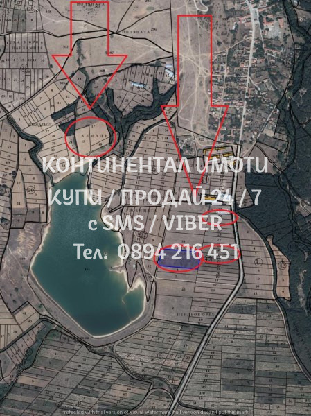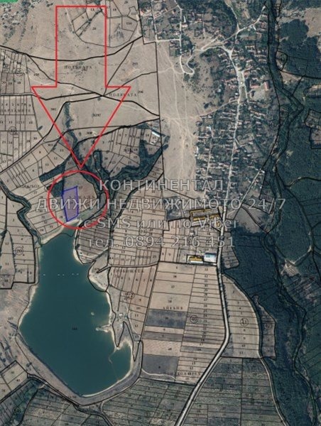 кодо 62233. Панорамен поземлен имот 14300м2 граничещ с язовир Алмалъка с развит риболов /11дка един имот и 1/2 ид.ч. от съседен имот/. Прекрасен масив за развиване на риболовна и еко база, екотуризъм. Възможно ползване сега от каравани, кемпепи, палатки, шатри - евентуално застрояване при смяна на НТП за лично имение или бизнес цели в областта на еко туризма. Имотът е съставен от две съседни ниви. Продават още 5 имота - 4 съседни на 120м от язовира зад местото с постройки за рибарите, с достъп и лице на асфалтиран път, последният е 2дка с лице на същия асфалтиран път. Общата им площ е 21дка - идеални за застрояване след смяна на НТП или сега пролзвани с каравани, кемпери, палатки, фургони. Общата площ на всички имоти е 37дка с цена 119000лв.