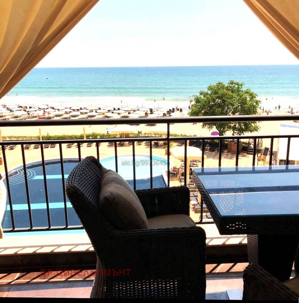 Продаваме отличен апартамент на първа линия с гледка море в комплекс Хевън (Heaven) на самия плажа в Слънчев бряг (на пясъка, на 20 метра от самото море). Това е една от най-желаните локации в Слънчев бряг (Източната част откъм морето до самия плаж). Мястото е емблематично за района в близост до много заведения, Казино Platinum, множество хотели, магазини и много други. Локацията води до огромен инвестиционен потенциал, както от гледна точка на отдаване под наем, така и от възможност за дългосрочна и краткосрочна голяма доходност.