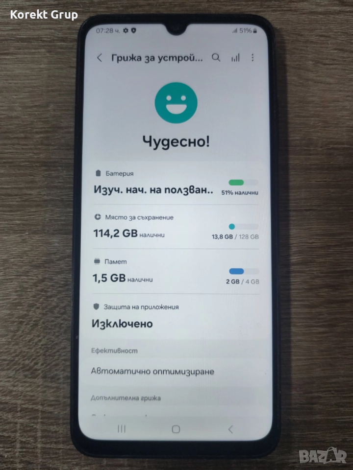 - Операционна система: Android 13, корпус: One UI Core 5.1