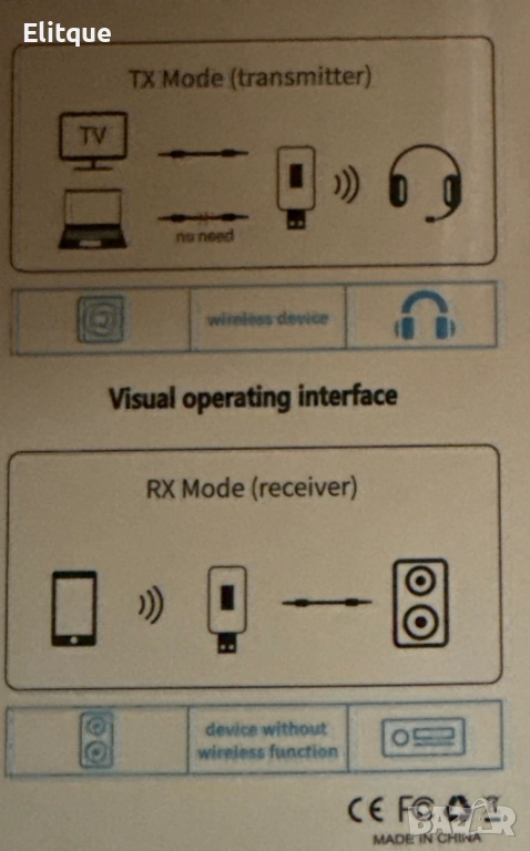 Получава звук от телефона безжично и предава чрез AUX вход към автомобилното радио или предава звук безжично на слушалки / високоговорители от телевизор / компютър. Bluetooth 5.0 нано приемник и предавател на звук. Многофункционално устройство 2 в 1. Функцията на поточна (възпроизвеждаща) мултимедия от телефон, таблет, лаптоп и т.н.