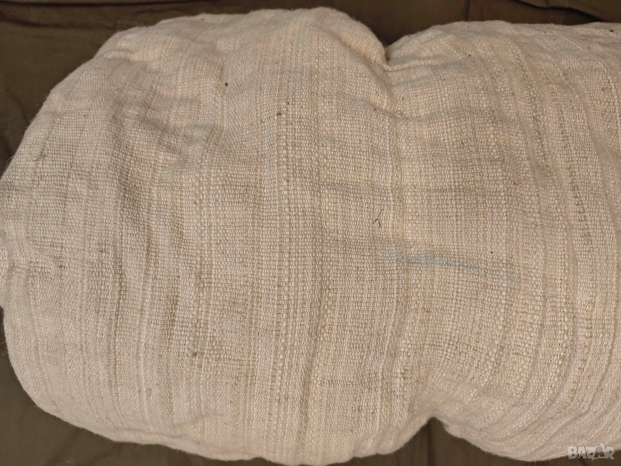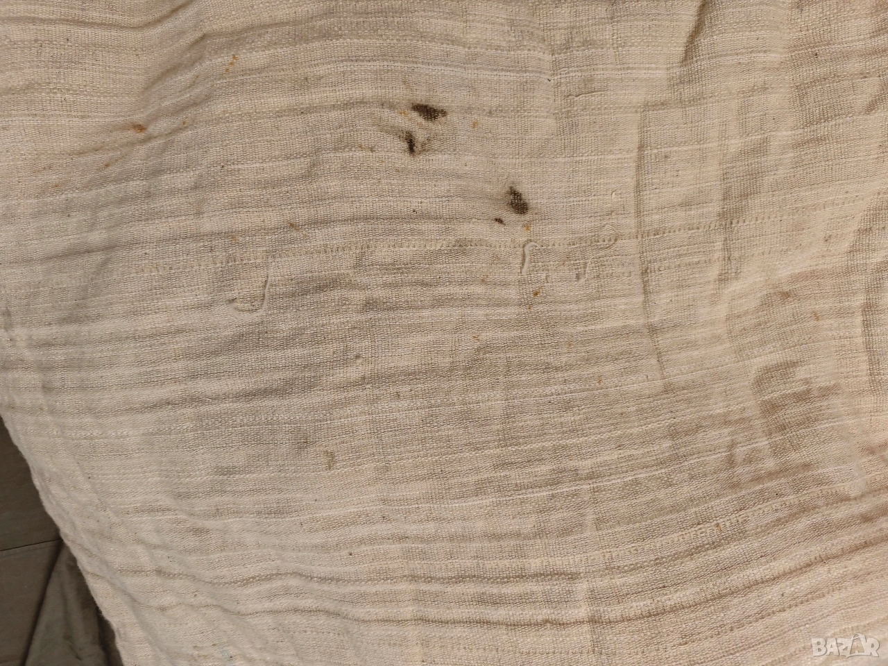 Продавам бял китеник Размери: 220/250 см Вероятно е ползван малко,има петна , една дупка или разплитане ,като и някава треви по него .За пране