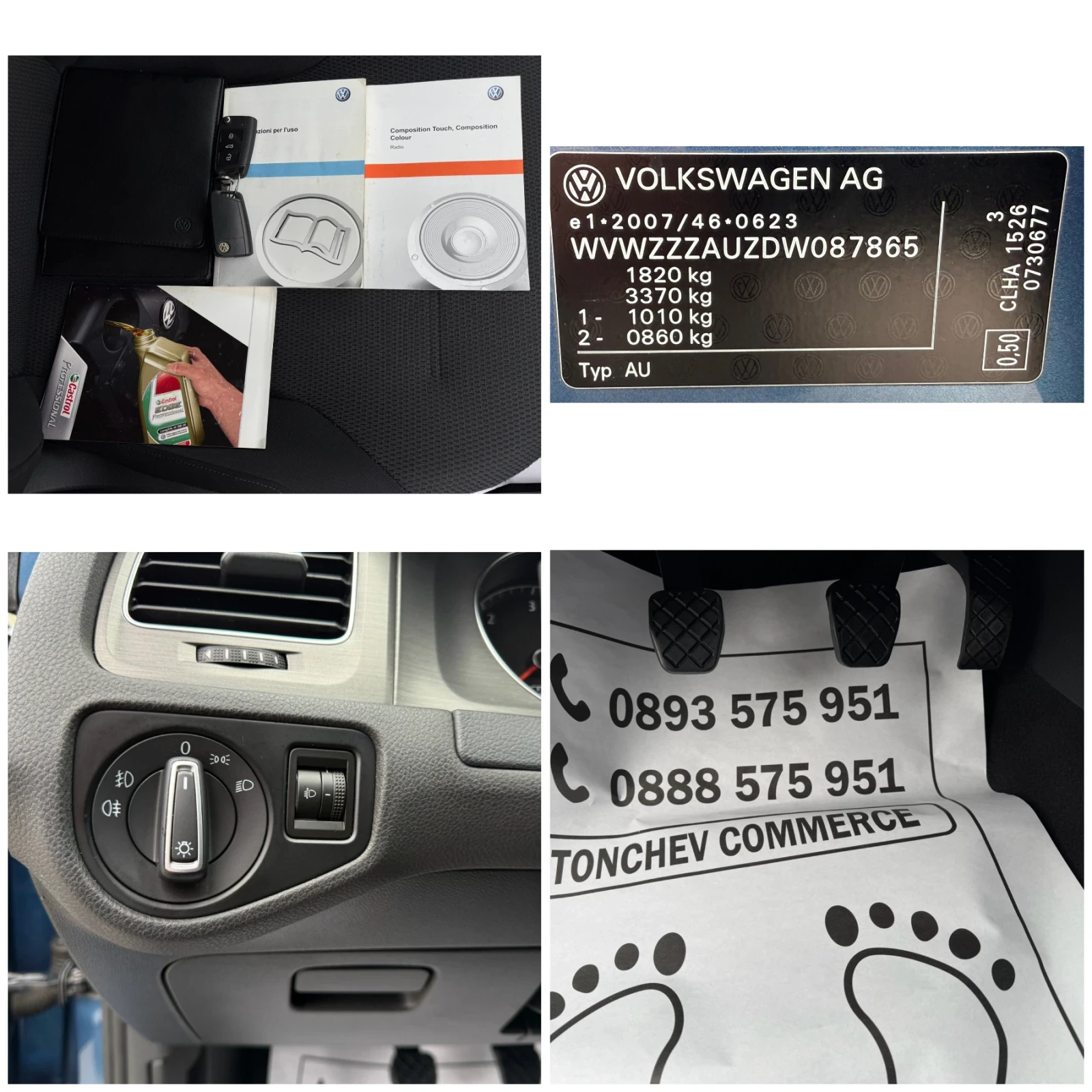 Автомобилът е закупен от оказион на VW в Италия гр. Торино и е от първи собственик, в перфектно състояние, без следи от употреба! !! Много добре подържан и обгрижван, навреме обслужван и редовно почистван, без следи от цигари, без следи от удари и пребоядисвани детайли, всичко е оригинално без следи от употреба с пълна сервизна история от VW и напълно реални и доказуеми километри по няколко начина и три месеца гаранция на автомобила от нашата фирма, тиха и спокойна работа на двигателя, здрава и стегната ходова част, перфектна ръчна трансмисия! !! Всички екстри плюс изпълнение с най-висок клас на оборудване-HIGHLINE с уникално запазен двуцветов рекаро салон, 3-D тъч скрийн навигационна система с Българско меню, TV, DVD, дневни светлини, динамик фарове, лед стопове, три лъчев кожен волан, автопилот, оригинална мултимедия, 2бр. sd-карти, климатроник, борд компютър, пълен ел. пакет плюс ел. прибиране на страничните огледала и бленди за затъмване на тях, ауто холд, електрическа ръчна спирачка, bluetooth, лед амбиетно интериорно осветление, сензор за фарове и дъжд, ASR, ESP, ABS, AIR BAG, хладилна жабка, ISOFIX-система, оригинални стелки VW, оригинални алуминиеви джанти с нови летни гуми, халогени, 2бр. ключа, EURO-5B и други! !! Може да се направи проба желана от клиента и да се закара в сервиз по избор, при интерес предлагаме номер на рама за проверка на автомобила! !! Фирмата предлага лизинг! !!
