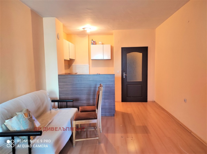 Апартаментът се състои от входно антре, хол с кухненски бокс, самостоятелна спалня, тераса, баня с тоалетна. Апартаментът е обзаведен и оборудван, но част от мебелите не са използвани от стария наемател и са в мазето. Ако новия наемател ги иска може да ги използва. Това е и причината да виждате снимки със и без мебели в хола. Снимките са стари и има различни налични мебели в хола с бокса.
