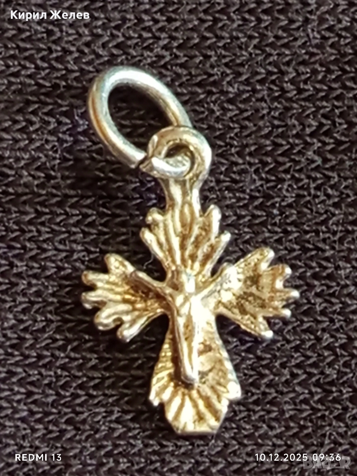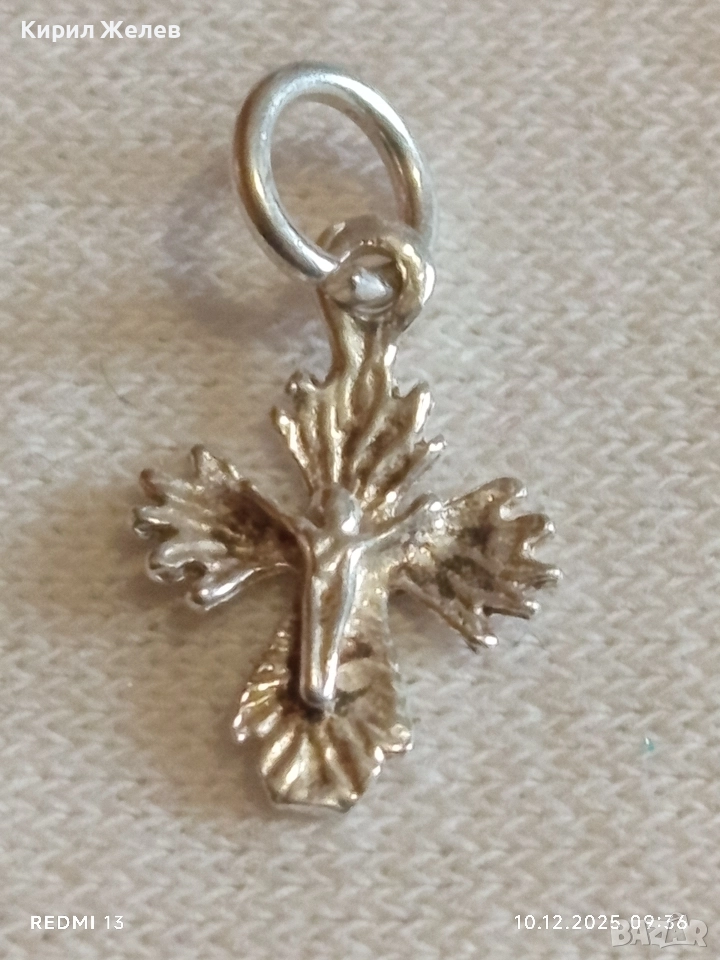 Сребърен кръст орнаментиран с Разпятието на Исус ръчна изработка 52419