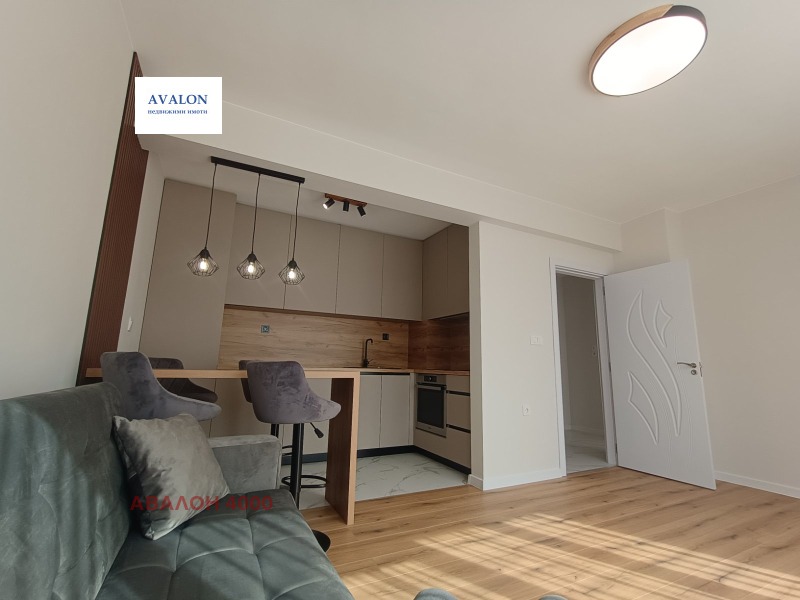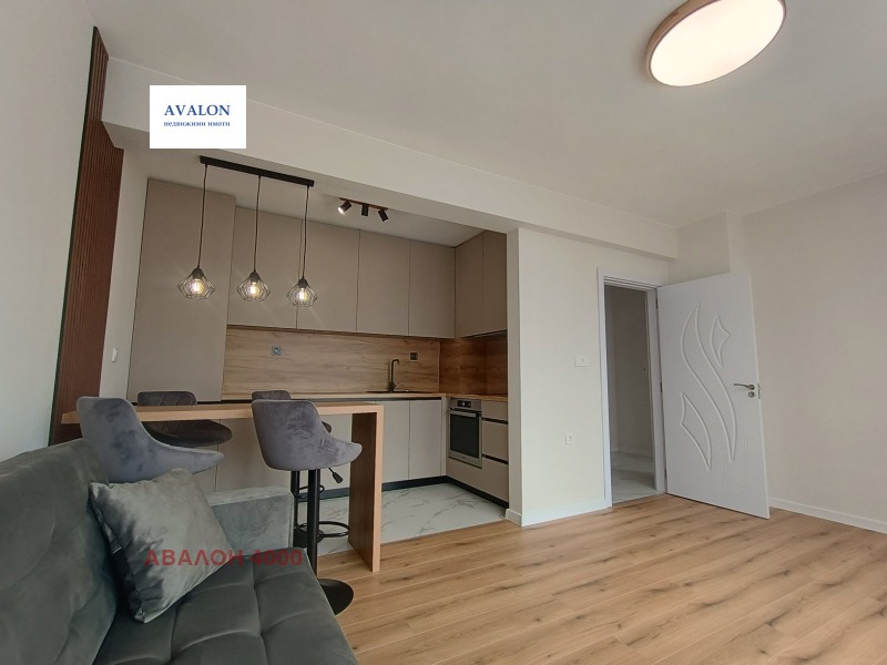 Апартаментът е разпределен в: широко входно антре, баня с тоалетна, спалня с излаз на тераса и много светла дневна с обособен кухненски бокс и втора по-широка тераса (11 кв.м.), която би могла да бъде организирана като място/дейност на открито или да бъде усвоена. Обзаведен с наличните мебели от снимките. Кухненси бокс - функционално обзаведен и оборудван с всички необходими електроуреди (вградени), а именно: котлони, фурна, хладилник с фризер, миялна машина, пералня със сушилня и ел. бойлерче за топла вода. Баня с тоалетна също напълно готова за ползване.