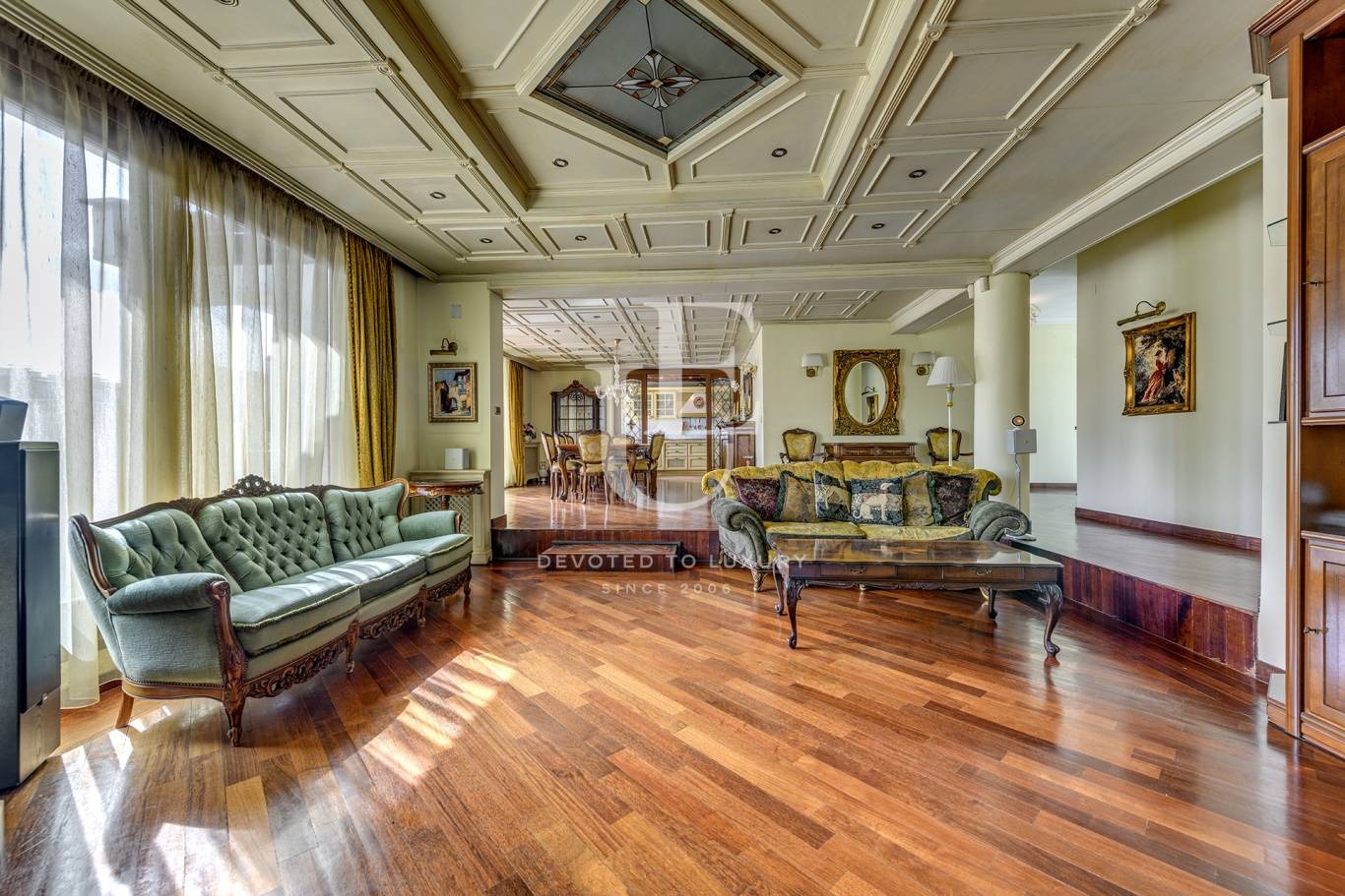 Имотът е напълно обзаведен със скъпи италиански мебели, част от които са правени по поръчка спрямо размерите на помещенията. Продава се с обзавеждането.