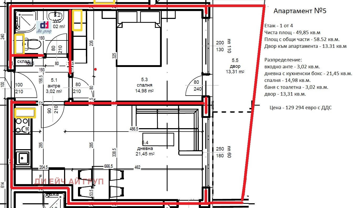 Чиста площ 49.85 кв.м.