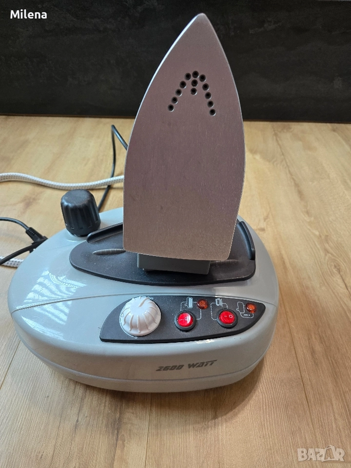 Парогенератор Elekom, 2600 W, Регулатор на температурата, Сив, EK-2668A Ютия с парна станция/ Парогенератор • Функции: сухо гладене, гладене с пара, паров удар, вертикално гладене • Защита от прегряване • Регулатор на температурата • Въртящ се на 180° кабел • Място за кабела • Загряване след: 2-3 мин • Електрическа помпа • Генерирано налягане: 2.5 бара • Захранване: 220V/50Hz • 2600 W • Размер на опаковката (ШхВхД): 35x15x36 cm Основни характеристики: Цвят: Сив Употреба: Домашна Тип продукт: Гладачна станция Технически спецификации: Мощност: 2600 W Материал на гладещата повърхност: Стомана.Внос Германия! Нова - без кутия