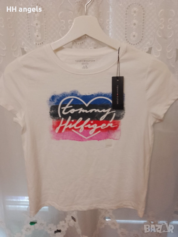 Тommy Hilfiger чисто нова тениска с етикети ,поръчана за М размер,или е за момиченце или е супер умалена.Дължина 53 см и гръдна обиколка 86 см и се разпъва спокойно над 100 см.Много красиво моделче. От Америка е.