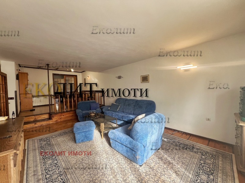 Дневна, свързана с трапезарията, с мека мебел, холна маса и модулен TV сет.
