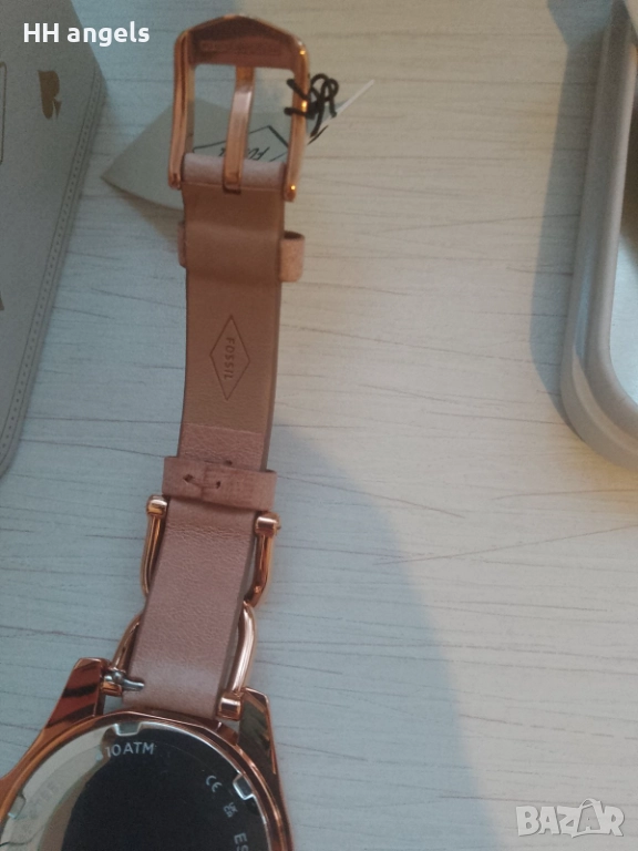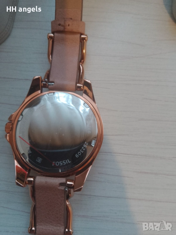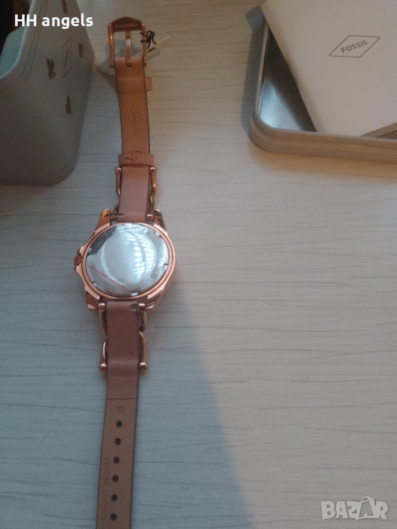 Fossil Riley чисто нов часовник,пълна презентация.Стилен часовник в цвят розово злато с кафеява каишка от естествена кожа.