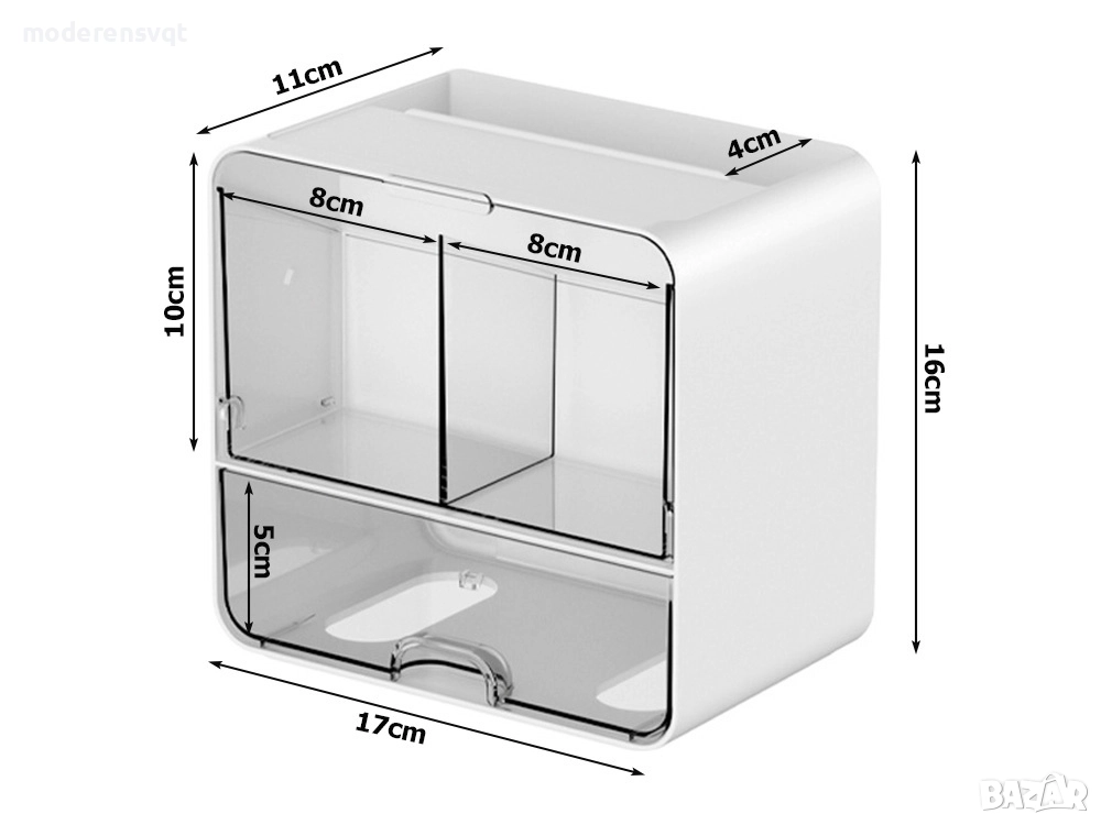 ✅ Чекмеджето в долната част на органайзера осигурява допълнително място за съхранение на плоски предмети, като например маски за лице или кърпички.