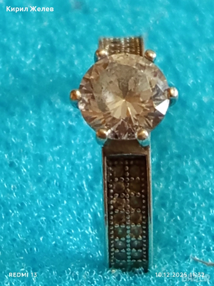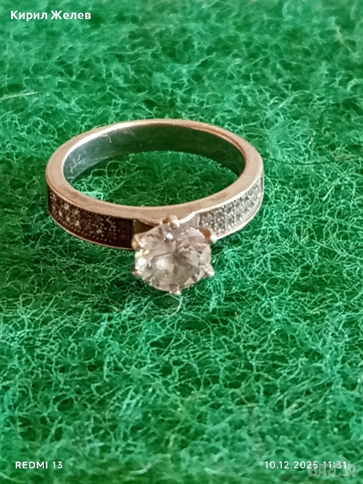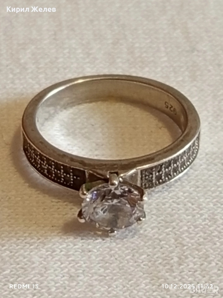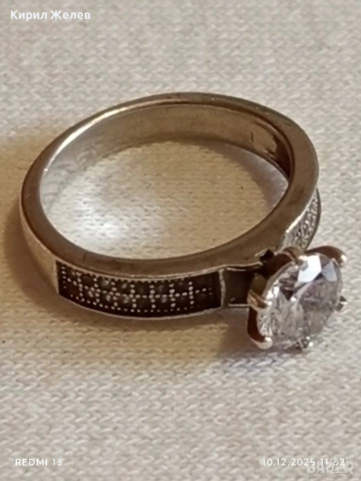 Елегантен сребърен пръстен с ювелирно инкрустирани цирконий ръчна изработка 34513