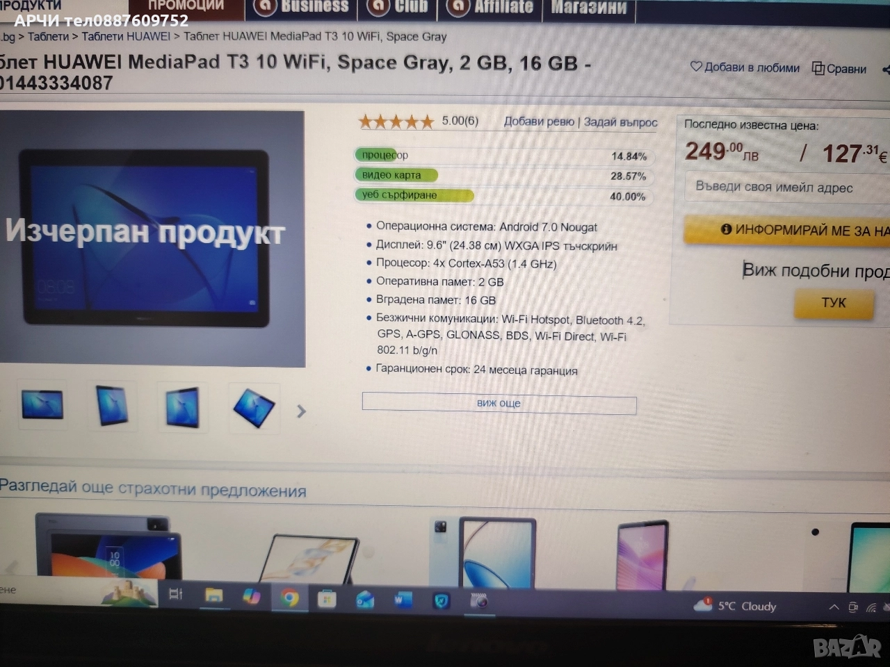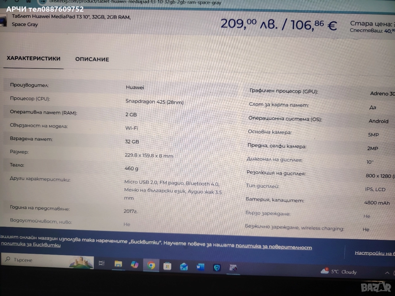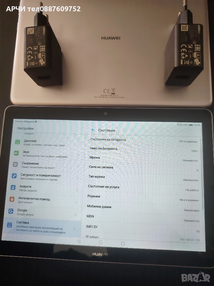 Продавам неразличими от нови таблети комплект с оригинално зарядно ...перфектни Марка: Huawei Размер на дисплея: 10" Вътрешна памет: 16GB Система: Android Описание 1.Артикул(марка/модел):