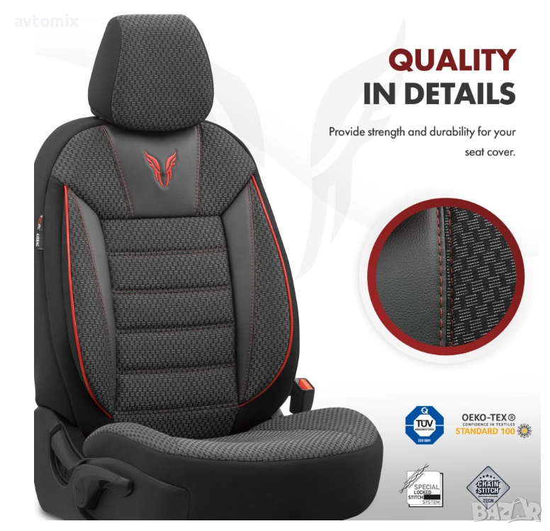 Премиум комплект калъфи за седалки, създаден за максимален комфорт, безопасност и дълготрайна защита. Универсално съвместим с повечето автомобили и SUV.