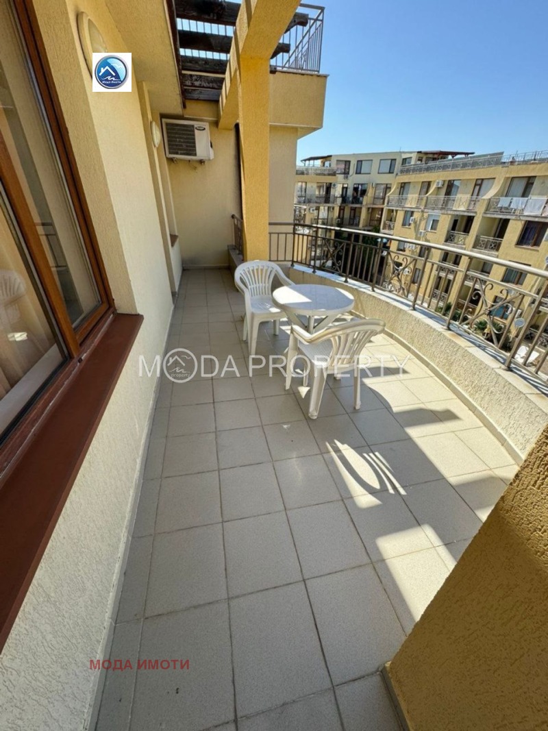 Удобства и услуги в комплекса 250 метра до морето с невероятна морска панорама Частен басейн Ресторант, работещ целогодишно 3 минути до целогодишен супермаркет, а през лятото супермаркет на територията на комплекса 3 минути до магазин за дрехи и банкомат 3 минути до автобусна спирка 3 5 минути до най-близкия плаж 24-часова охрана Напълно облагородена територия 4 км до Слънчев бряг (развит плаж с дължина 8 км) 8 км до Несебър обект на ЮНЕСКО, на повече от 2000 години Прокат на оборудване Охраняем паркинг