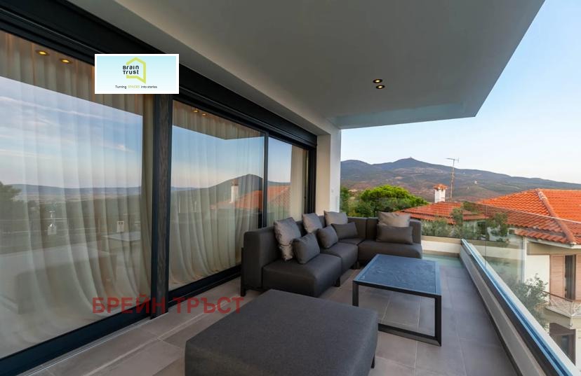 Състои се от 3 спални, 2 бани, хол, кухня. Включва покрито паркомясто, складово помещение, стая за игра, вътрешно стълбище, басейн и градина. Сградата е построена през 2023 г. Има спираща дъха гледка към море и града. Удобствата, които се откриват в жилището са подово отопление с термопомпа, климатик, алуминиева дограма с двоен стъклопакет, енергиен клас А+, дървен/теракотен под. Също така на разположение имате асансьор, ел. уреди, блиндирана врата, видеодомофон, алармена система, охранителни камери, сателитна чиния, мрежи против насекоми, автоматично напояване.