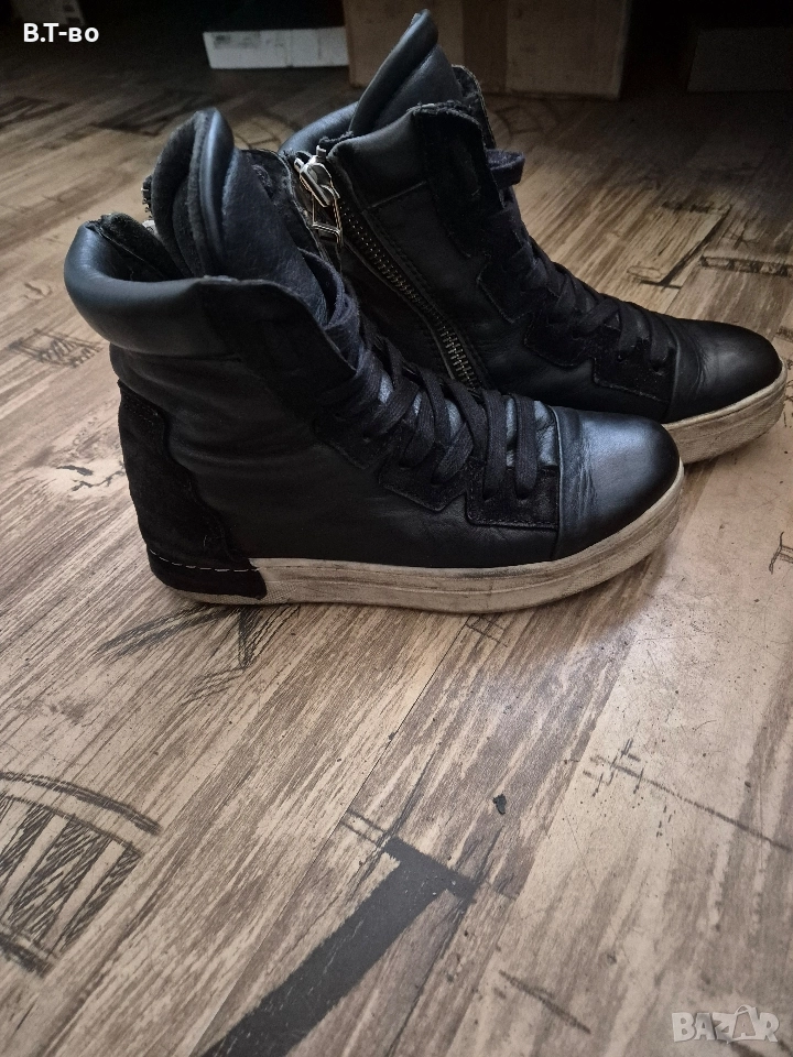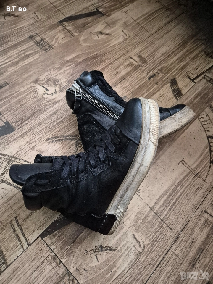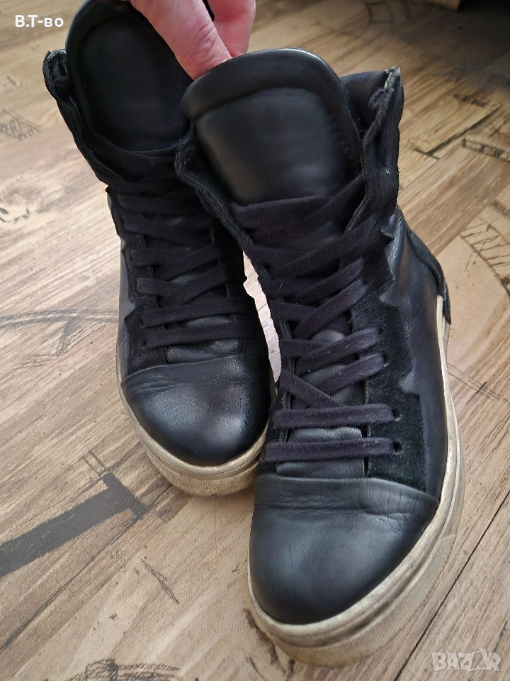 Естествена кожа, черни с винтидж подметка, без скъсано или разлепено в много добро състояние. Стелка-23.5см.