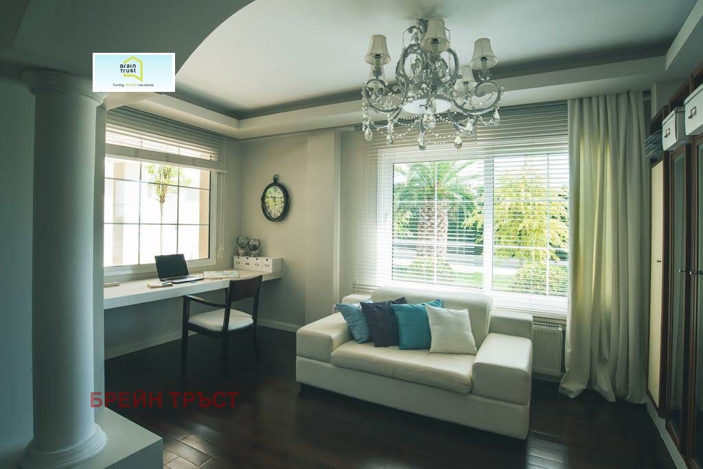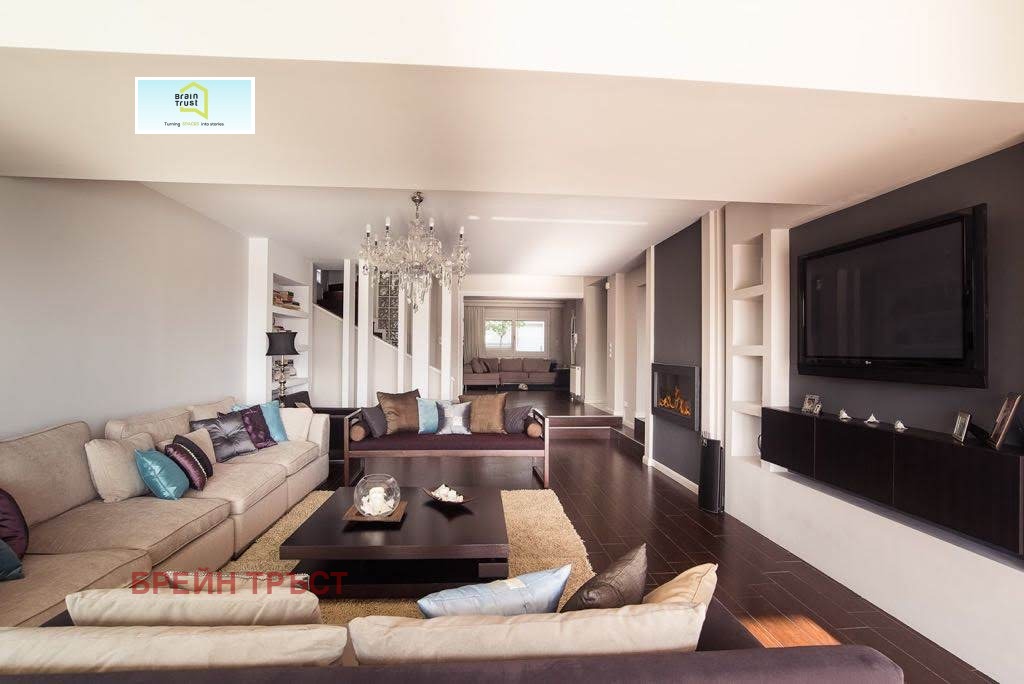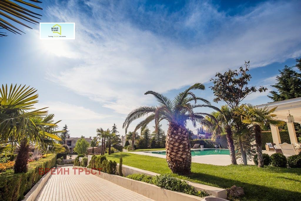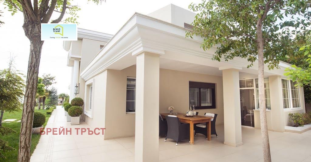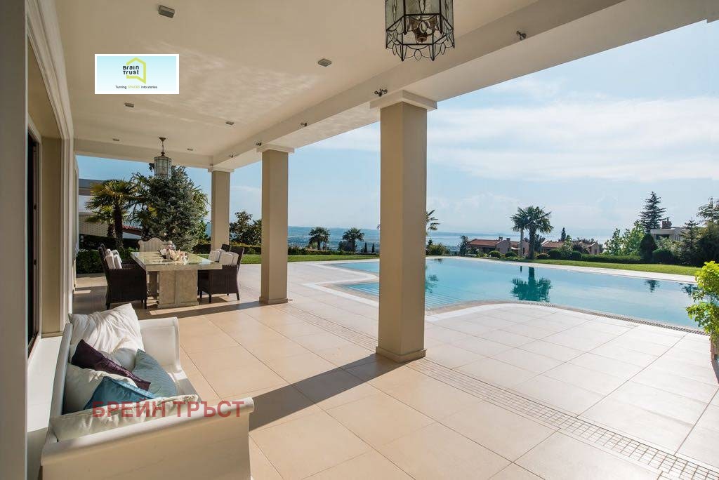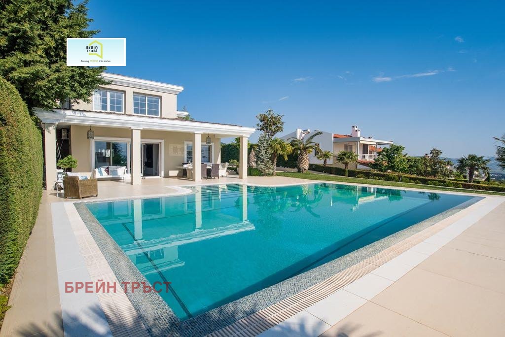 Brain Trust Ви представя луксозна вила 450 кв.м. в Панорама с морска гледка. Разположена върху парцел от 2000 кв.м.. Тази триетажна вила е побрала в себе си 5 спални, 4 бани, 1 кухня и 1 хол. Включва 4 закрити паркоместа, склад, вътрешно стълбище и западна ориентация с открита морска гледка. Построена е през 2002 г. Енергиен клас: B+.