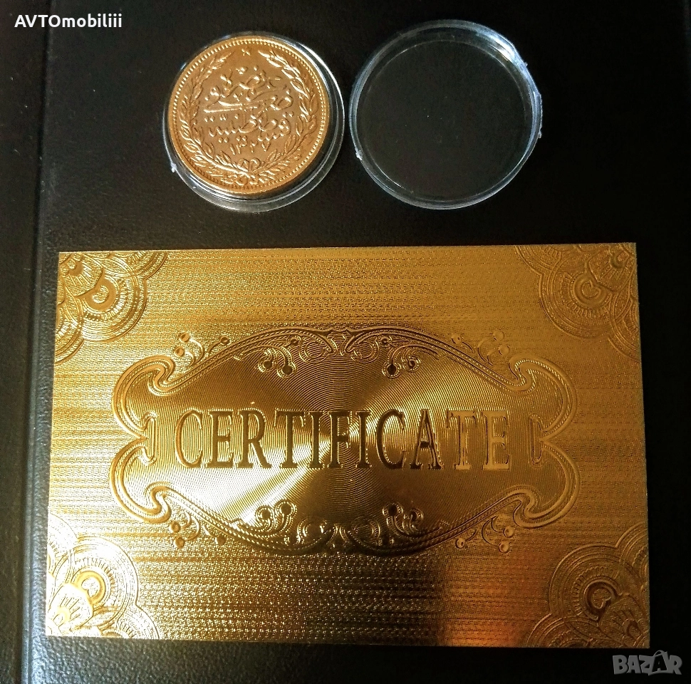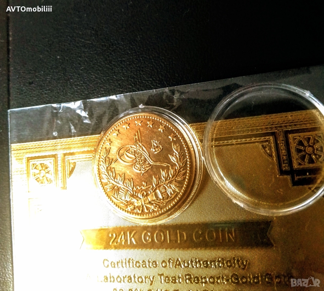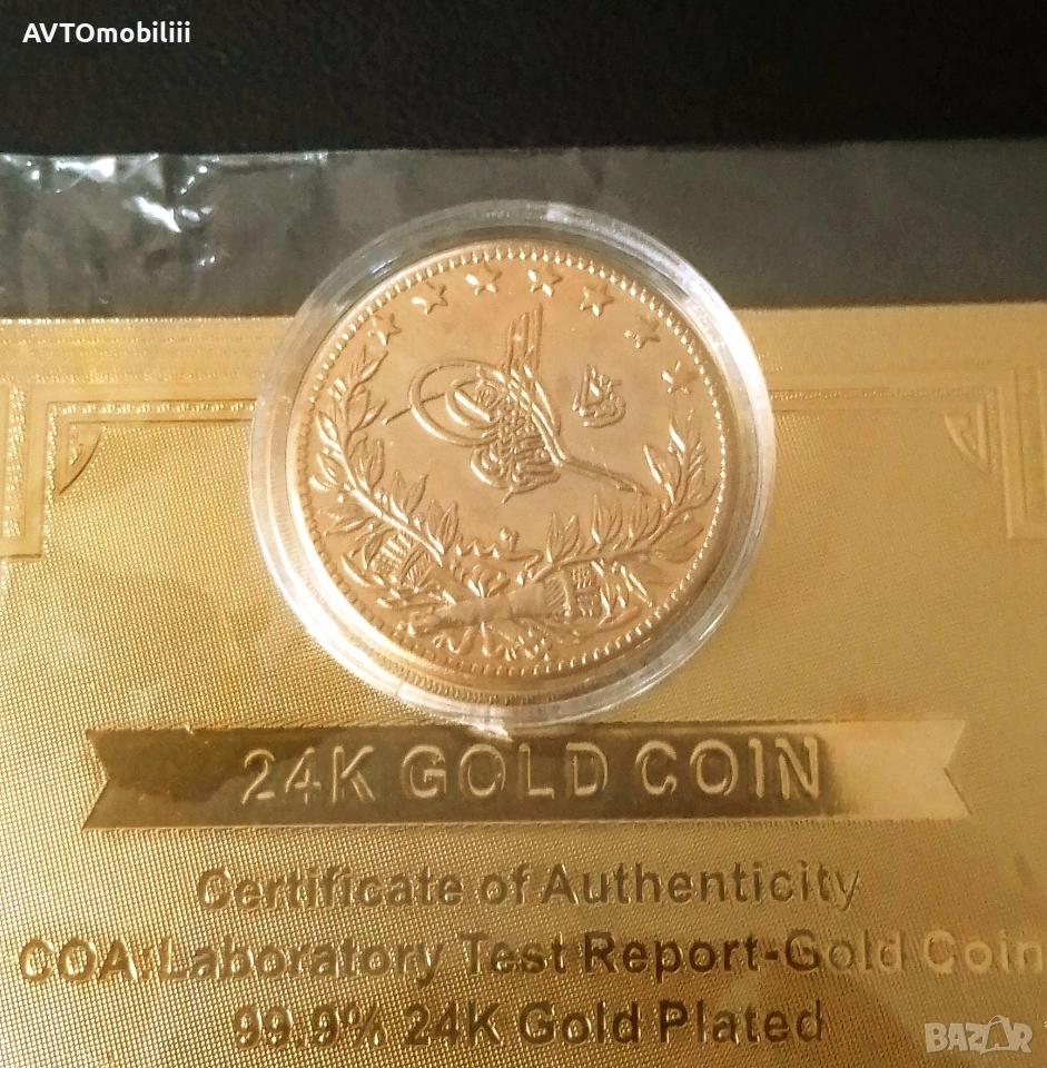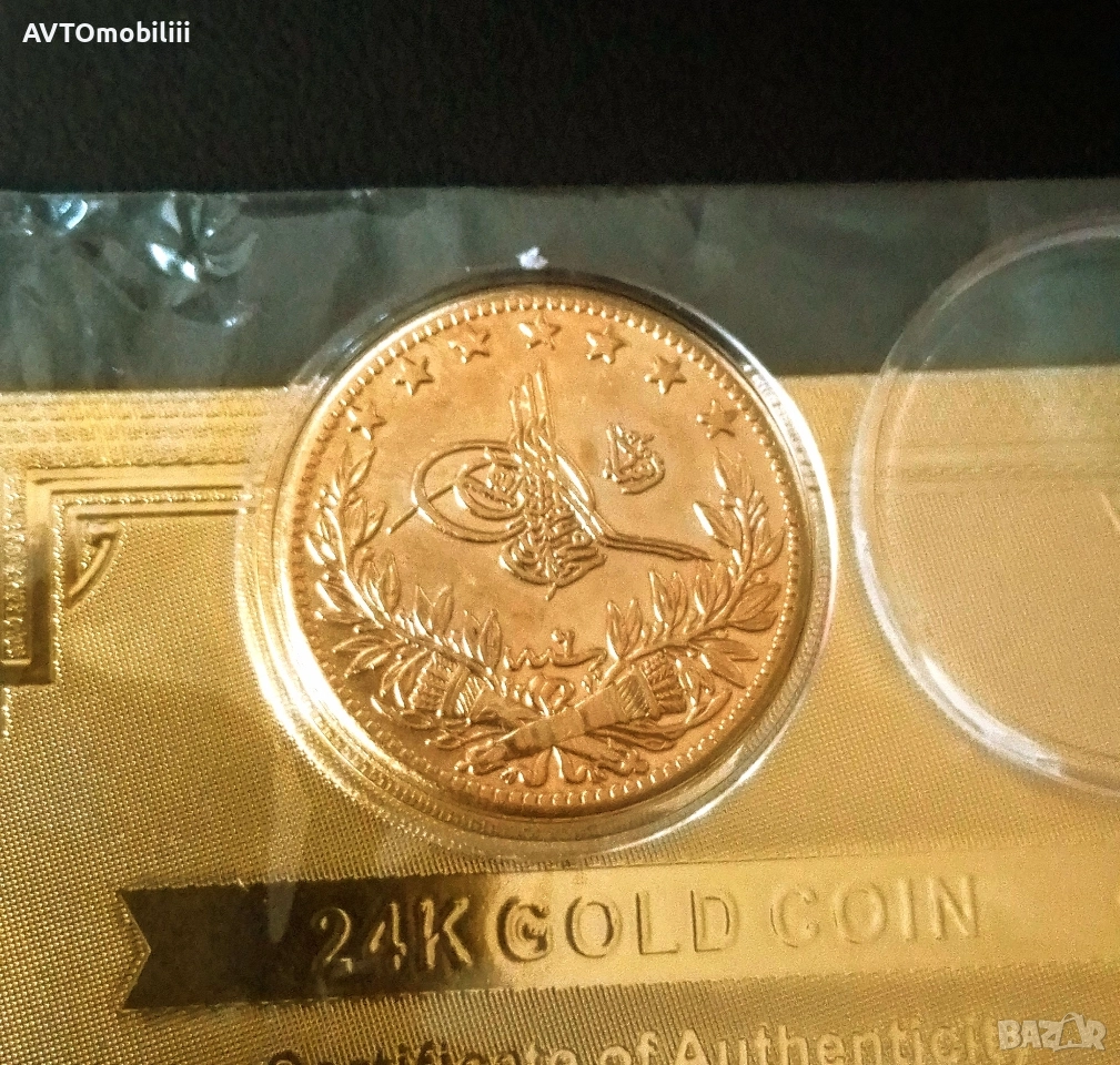 Позлатена с 24 карата злато османска монета със сертификат → Обява 52720165