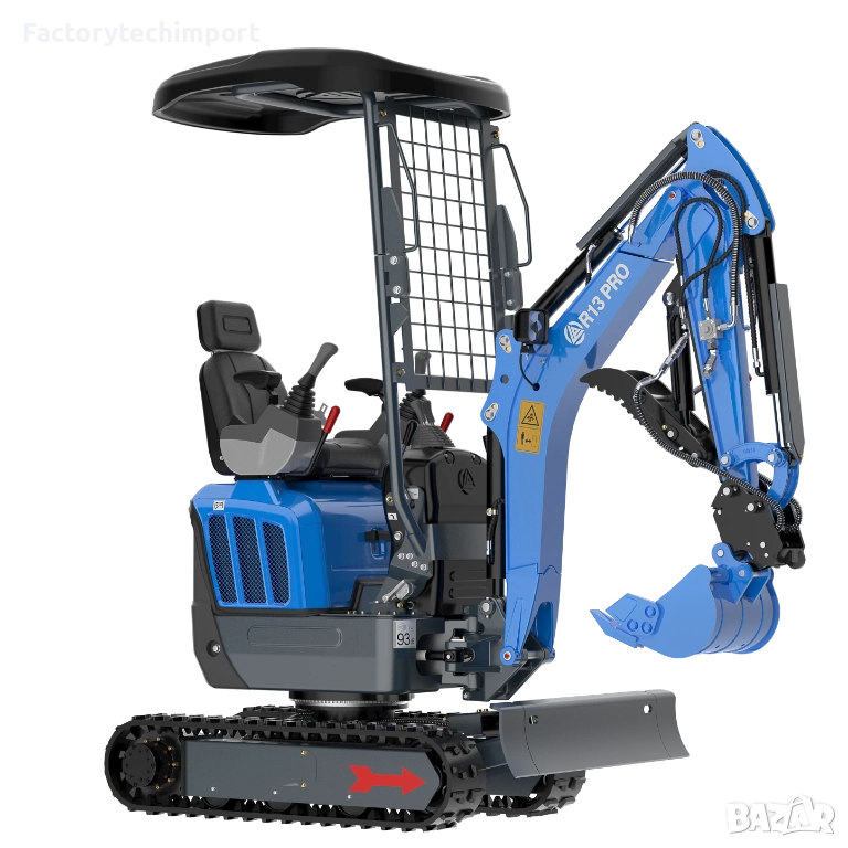 Мини багер RIPPA R13 PRO – KUBOTA (3 цилиндъра)– 1.2 т | 120° завъртане на стрелата