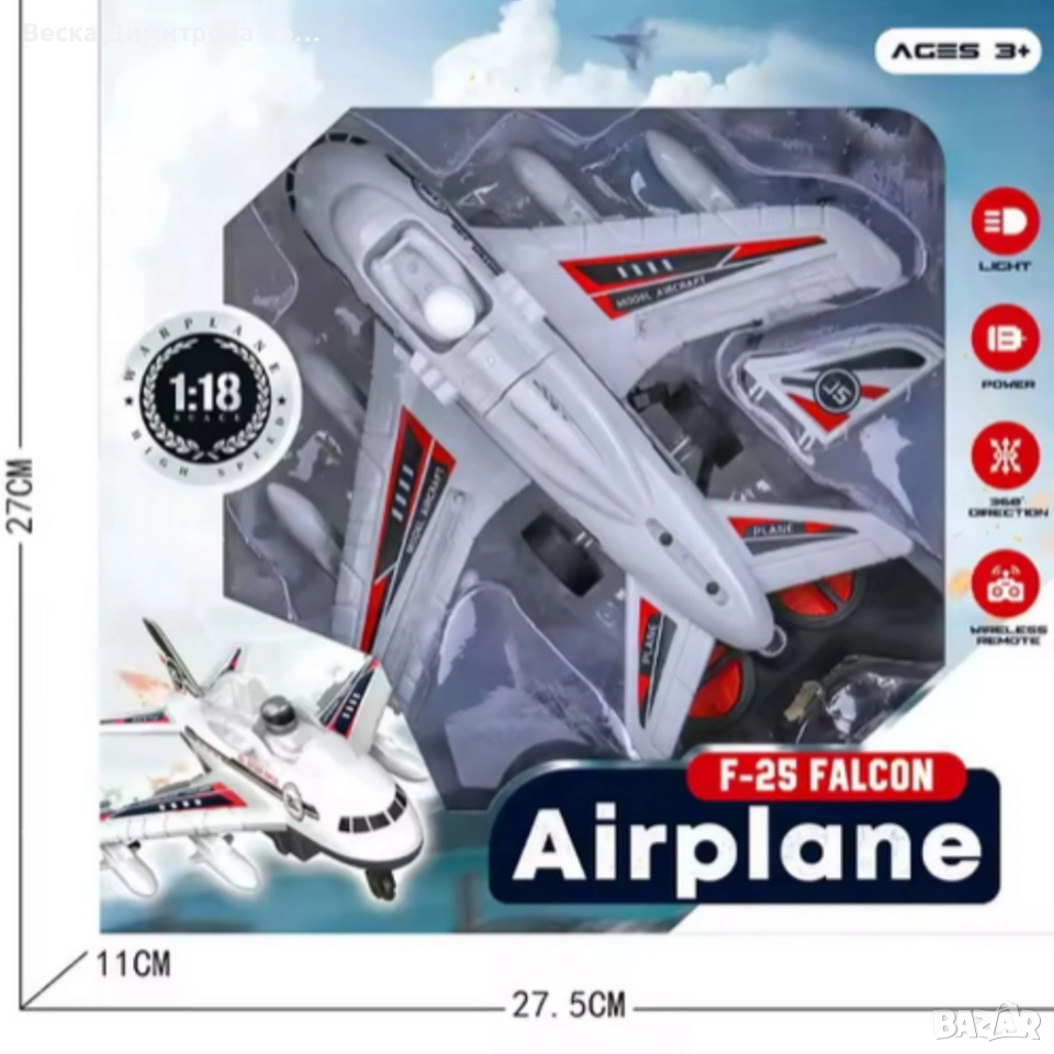Ако детето ти обича самолетите и търсиш нещо по-вълнуващо от обикновена играчка – радио управляваният самолет F-25 Falcon е точният избор! Управлява се с дистанционно напред, назад, наляво и надясно, има ярки LED светлини и реалистичен дизайн като истински реактивен самолет. Подходящ за деца над 3 години, изработен от лека и здрава пластмаса. Размер: 27,5×27×11 см, опаковка 22×22×9 см. Работи с батерии (не са включени). Стимулира координацията, въображението и интереса към техниката.